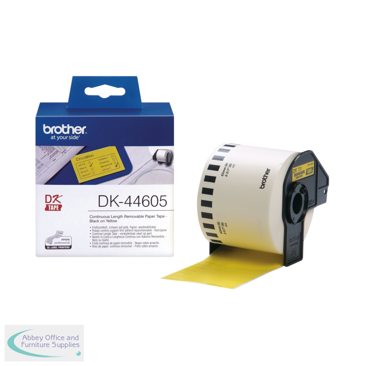 BA63515 - Brother Continuous Paper Label Roll with Removable Adhesive 62mm x 30.48m Black on Yellow DK44605