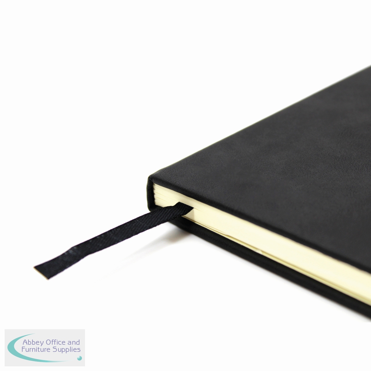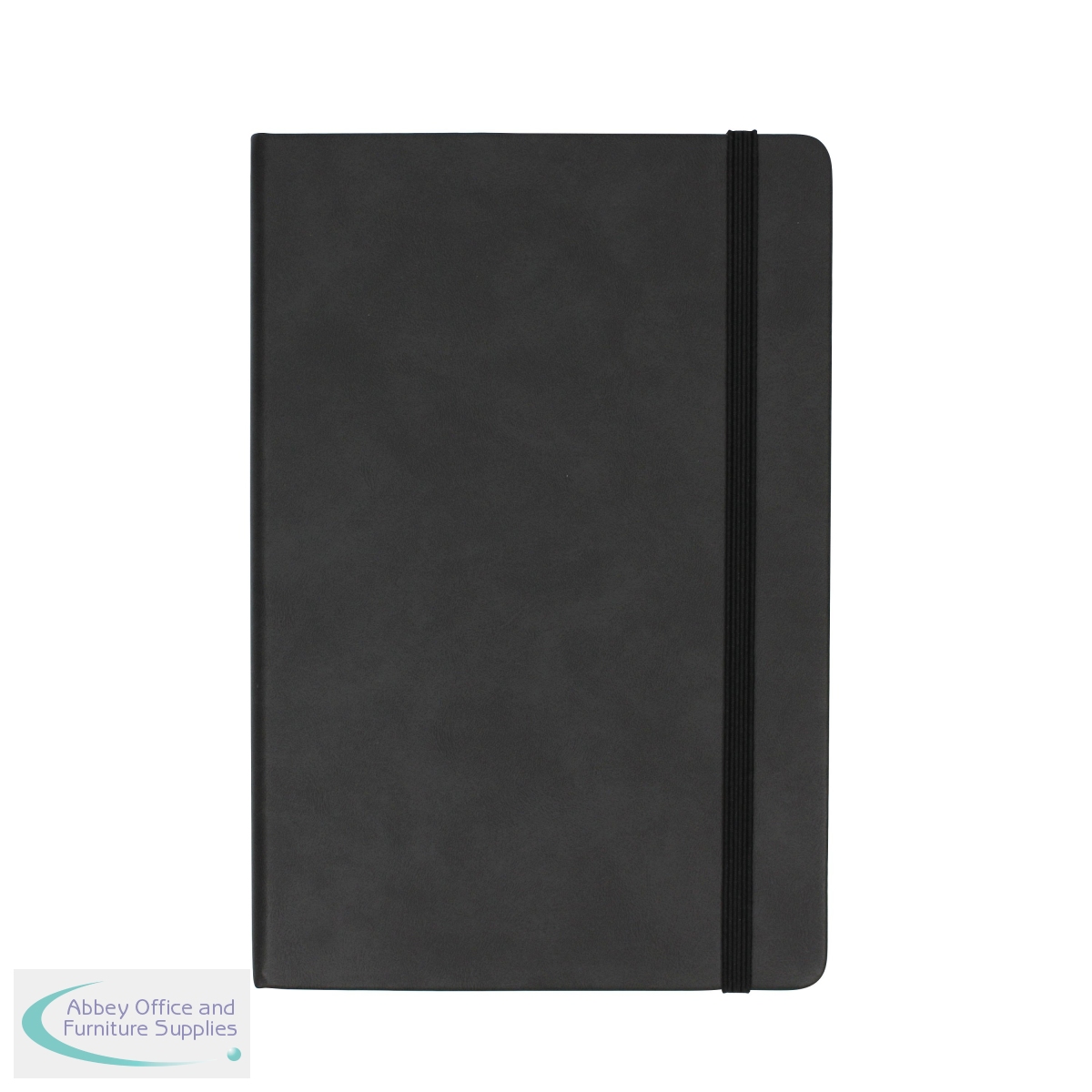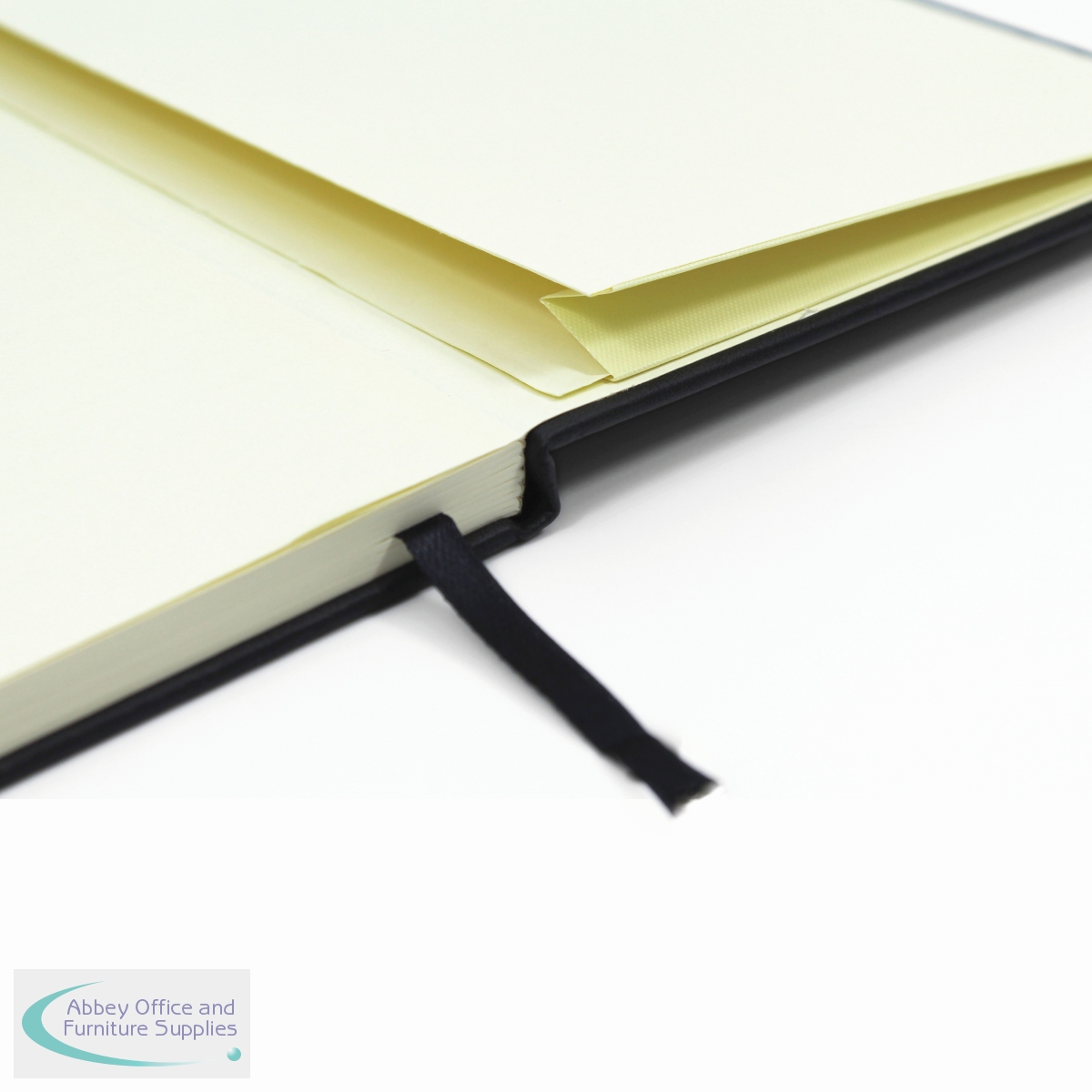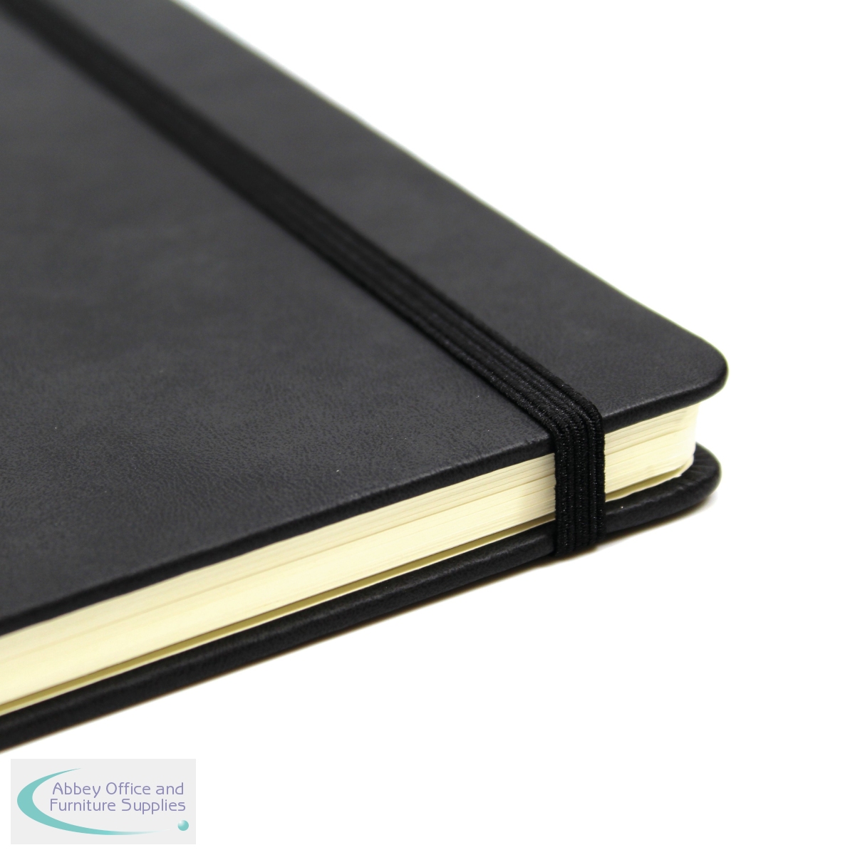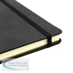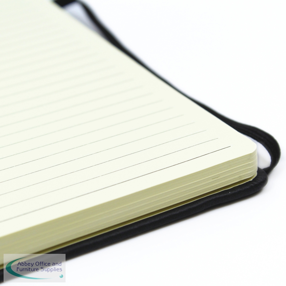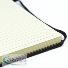 This executive A5 notebook from Silvine contains 160 pages made of premium ivory paper. The quality 80gsm pages are ruled for neatness and the black cover has a soft feel. It has an elasticated closure, a ribbon to mark your page and a pocket for storing loose papers.