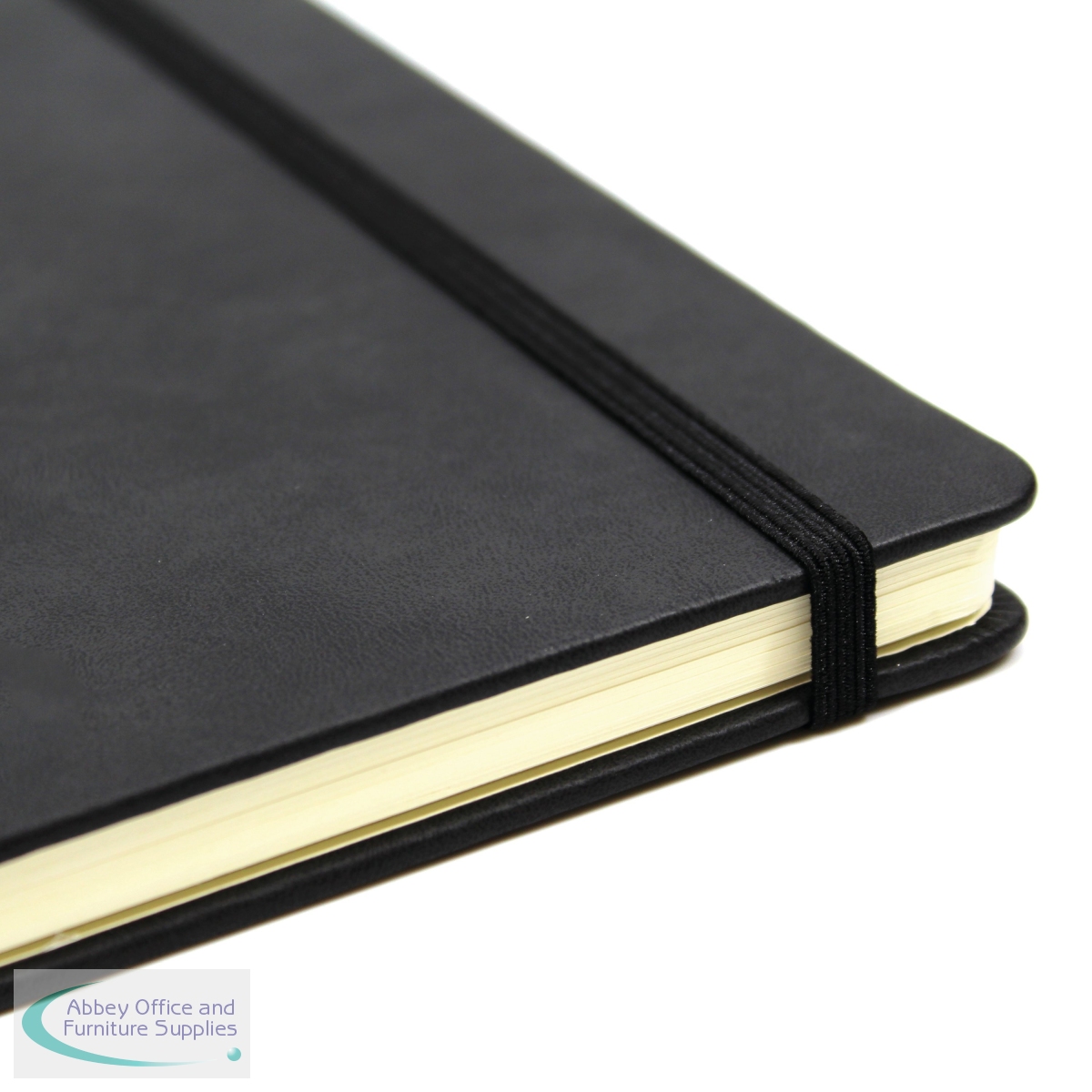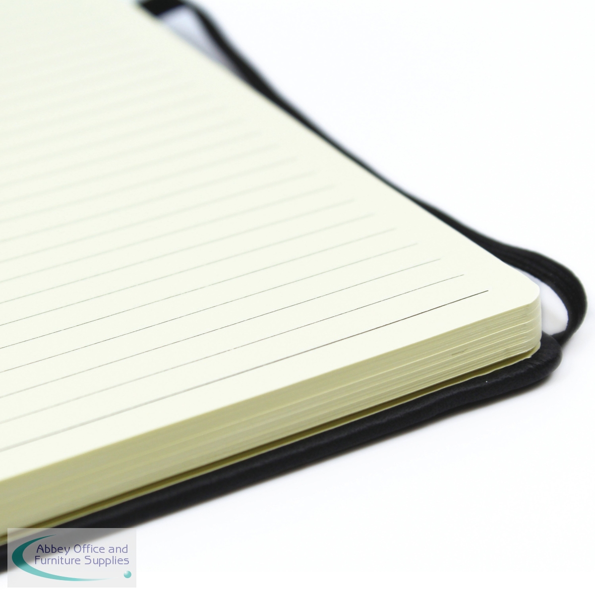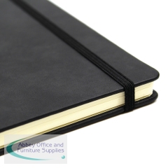This executive A4 notebook from Silvine contains 160 pages made of premium ivory paper. The quality 80gsm pages are ruled for neatness and the black cover has a soft feel. It has an elasticated closure, a ribbon to mark your page and a pocket for storing loose papers.