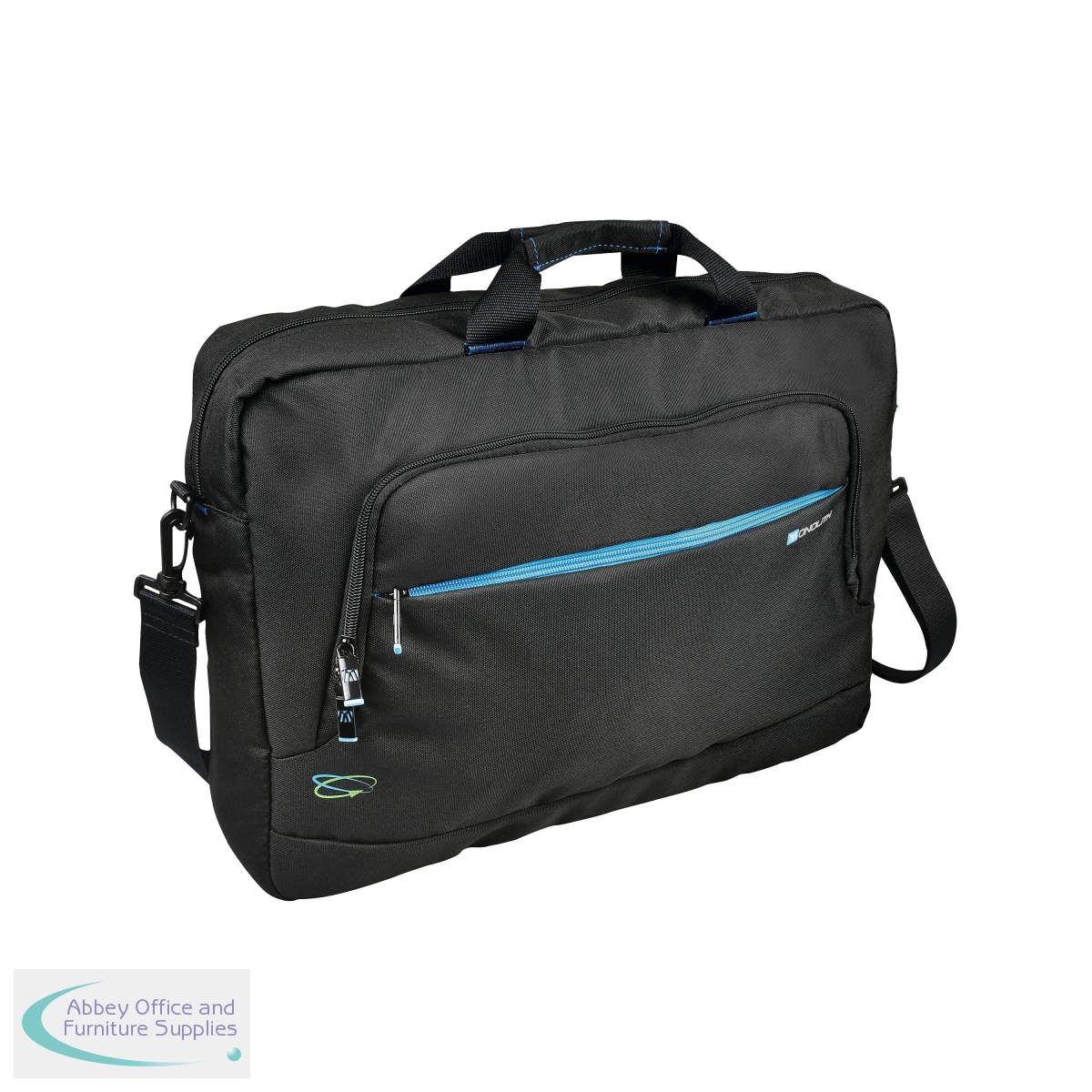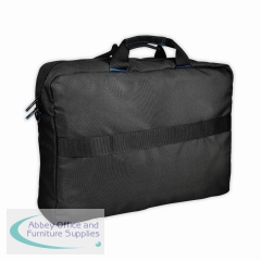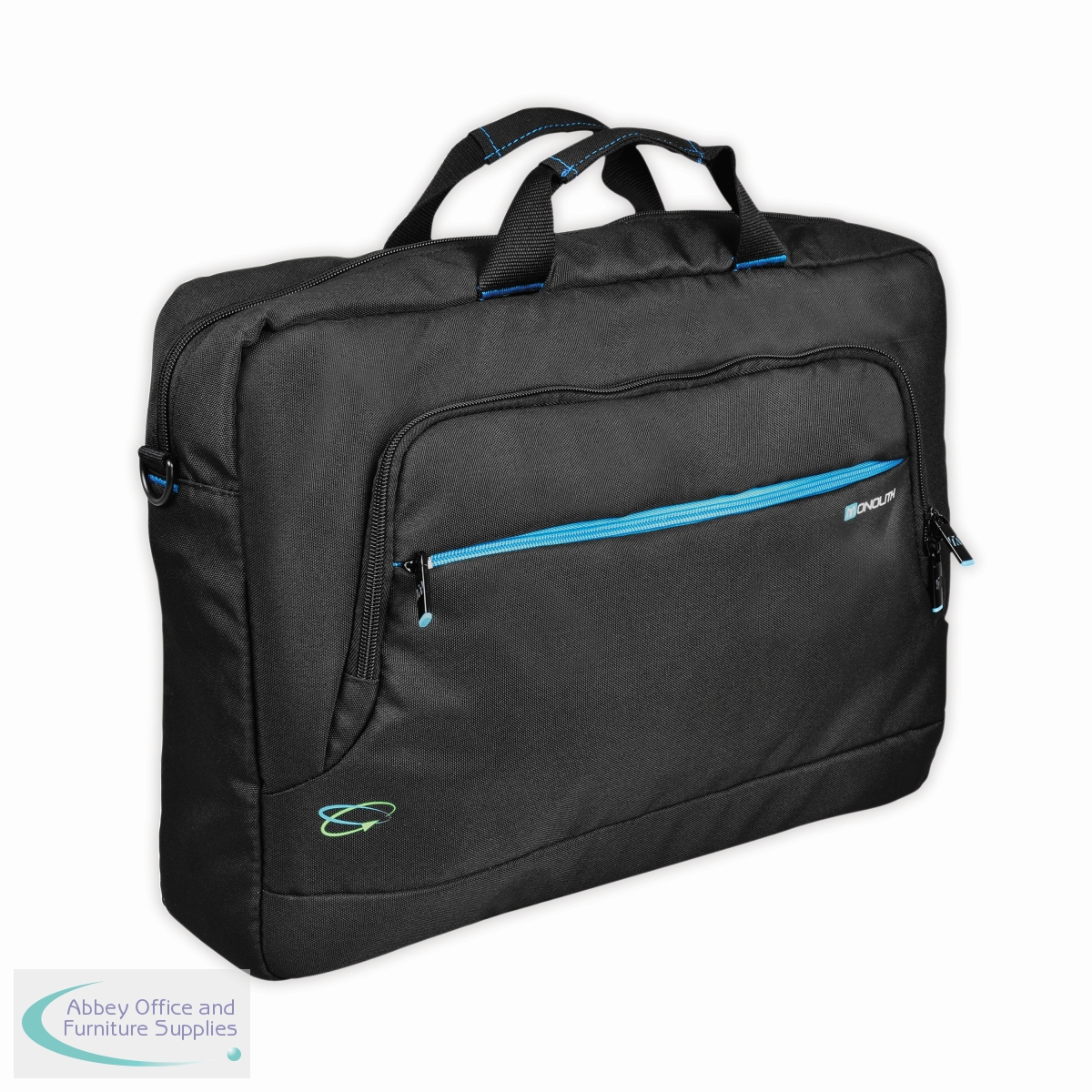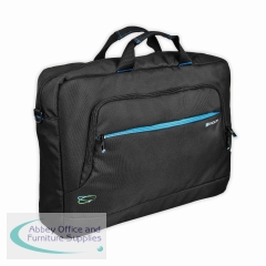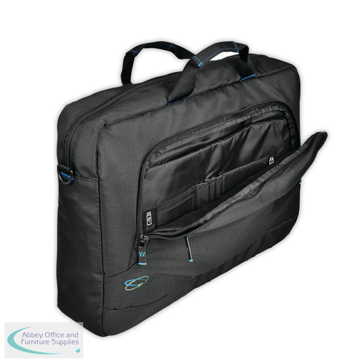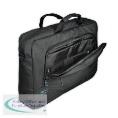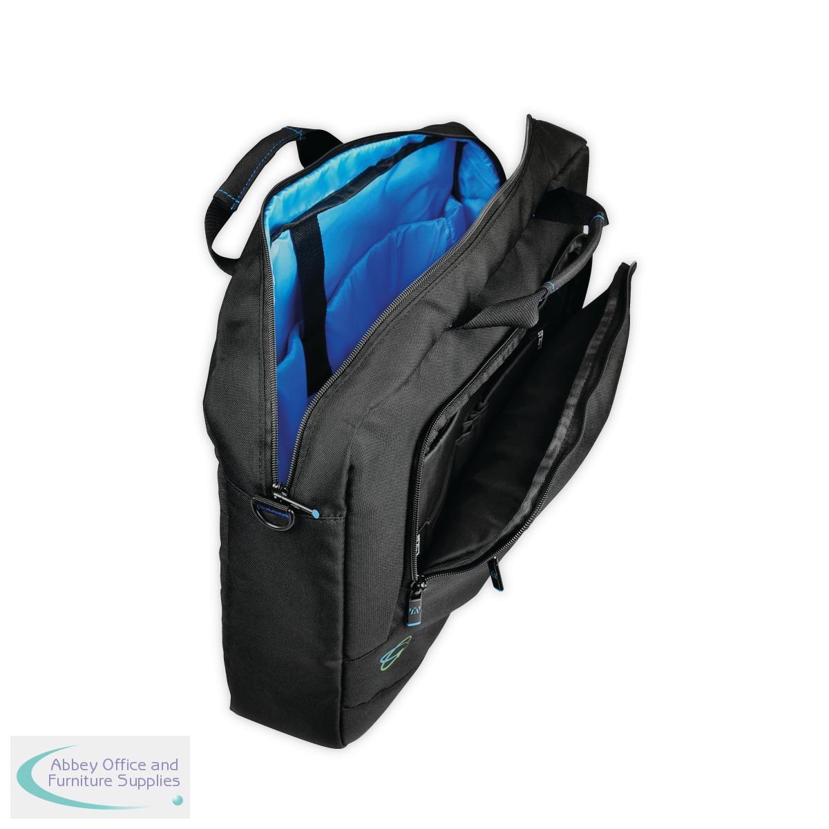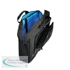 Stylish and professional laptop briefcase from Monolith featuring a large internal storage capacity with multiple pockets and sections ideal for smaller items. Featuring a padded pocket for protection of your laptop, iPad or tablet measuring up to 17.2 inches, the briefcase has comfortable padded handles, an adjustable shoulder strap and trolley strap to the rear. In a modern design of black with blue detailing and made from recycled plastic bottles, this environmentally friendly briefcase even helps to keep the oceans clear.
