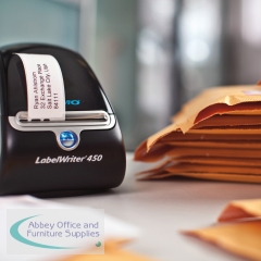 This roll of standard address labels is suitable for high-speed use with all Dymo LabelWriter printers, printing anything from a single label to the entire roll at once with the efficient thermal print mechanism. The self-adhesive backing makes it easy to secure labels to almost any surface. Suitable for use on envelopes and packages.