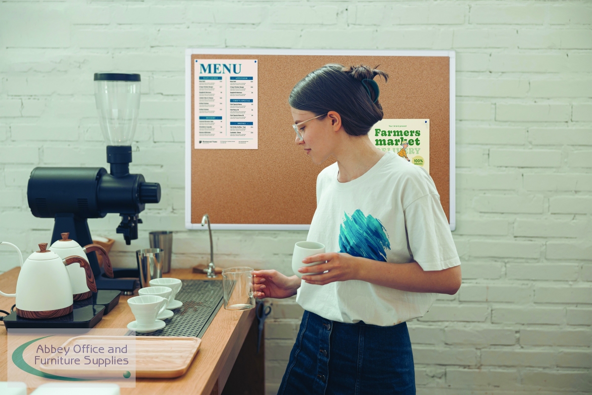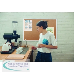 The Bi-Office Antimicrobial Cork Notice Board has been treated with a special additive that inhibits the growth of microbes. As a result, the potential risk of surface to surface or surface to user cross-contamination decreases significantly. It also prevents foul smells, irremovable staining, or premature material degradation. The white lacquered aluminium frame also has antimicrobial properties. It's the perfect fit for areas where cleanliness is essential like healthcare facilities, but also for regular spaces like meeting rooms or classrooms. Pin boards are a great way to keep important information organised and to post reminders. It's a handy way to inform everyone at once, to get creative or set goals. Use push pins to put up pictures, memos or lists in your office or at home. The cork surface is self-healing and resistant, no marks are visible when the push pins are removed. Horizontal or vertical wall mount with screws that go through the holes in the plastic corners. This is the simplest, sturdiest, and most robust mounting system around. As a wall-mounted board, it's a cost-effective solution that saves room space. Antimicrobial technology is built into our products to inhibit the growth of microorganisms. Its properties do not protect users or others against bacteria, viruses, germs, or other disease organisms. This technology is not a substitute for good cleaning practices.