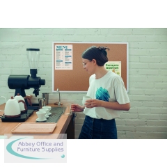 The Bi-Office Antimicrobial Cork Notice Board has been treated with a special additive that inhibits the growth of microbes. As a result, the potential risk of surface to surface or surface to user cross-contamination decreases significantly. It also prevents foul smells, irremovable staining, or premature material degradation. The white lacquered aluminium frame also has antimicrobial properties. It's the perfect fit for areas where cleanliness is essential like healthcare facilities, but also for regular spaces like meeting rooms or classrooms. Pin boards are a great way to keep important information organised and to post reminders. It's a handy way to inform everyone at once, to get creative or set goals. Use push pins to put up pictures, memos or lists in your office or at home. The cork surface is self-healing and resistant, no marks are visible when the push pins are removed. Horizontal or vertical wall mount with screws that go through the holes in the plastic corners. This is the simplest, sturdiest, and most robust mounting system around. As a wall-mounted board, it's a cost-effective solution that saves room space. Antimicrobial technology is built into our products to inhibit the growth of microorganisms. Its properties do not protect users or others against bacteria, viruses, germs, or other disease organisms. This technology is not a substitute for good cleaning practices.