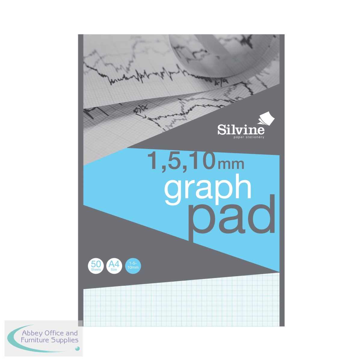 SV01821 - Silvine Graph Pad 1/5/10mm 50 Sheets A4 A4GP1510