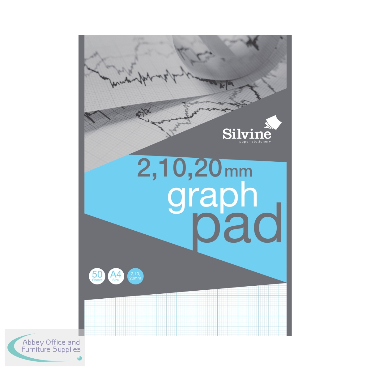 SV01822 - Silvine Graph Pad 2/10/20mm 50 Sheets A4 A4GP21020