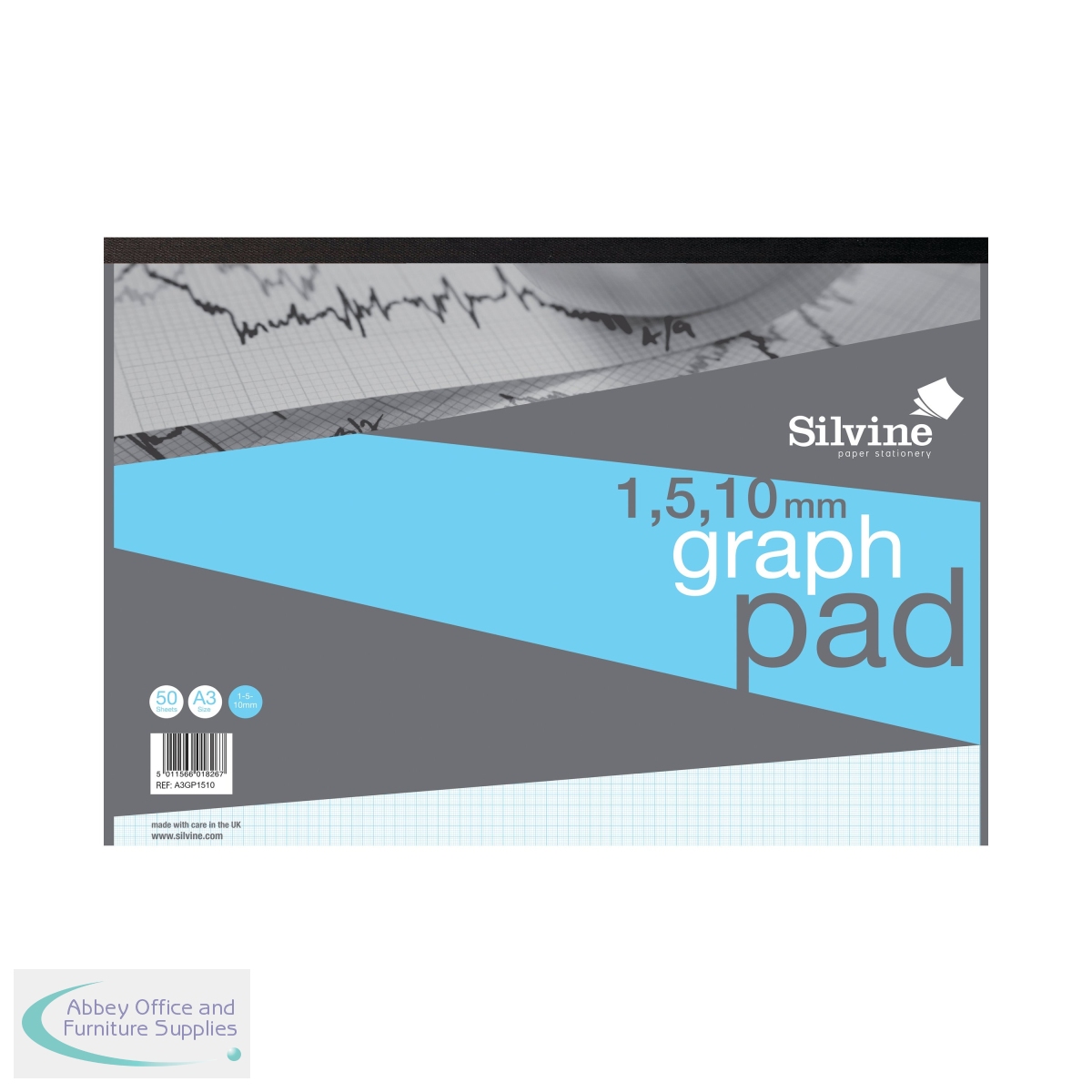SV01826 - Silvine Graph Pad 1/5/10mm 50 Sheets A3 A3GP1510