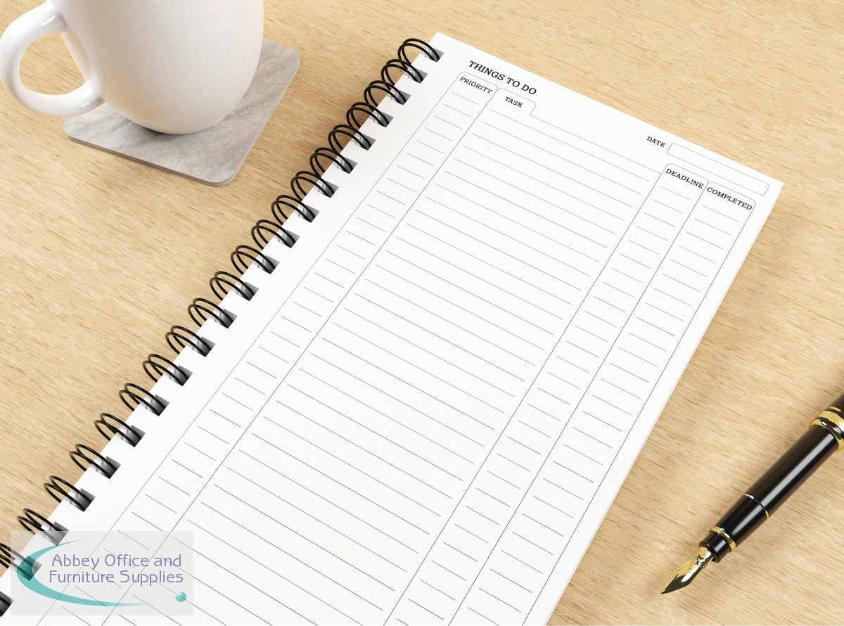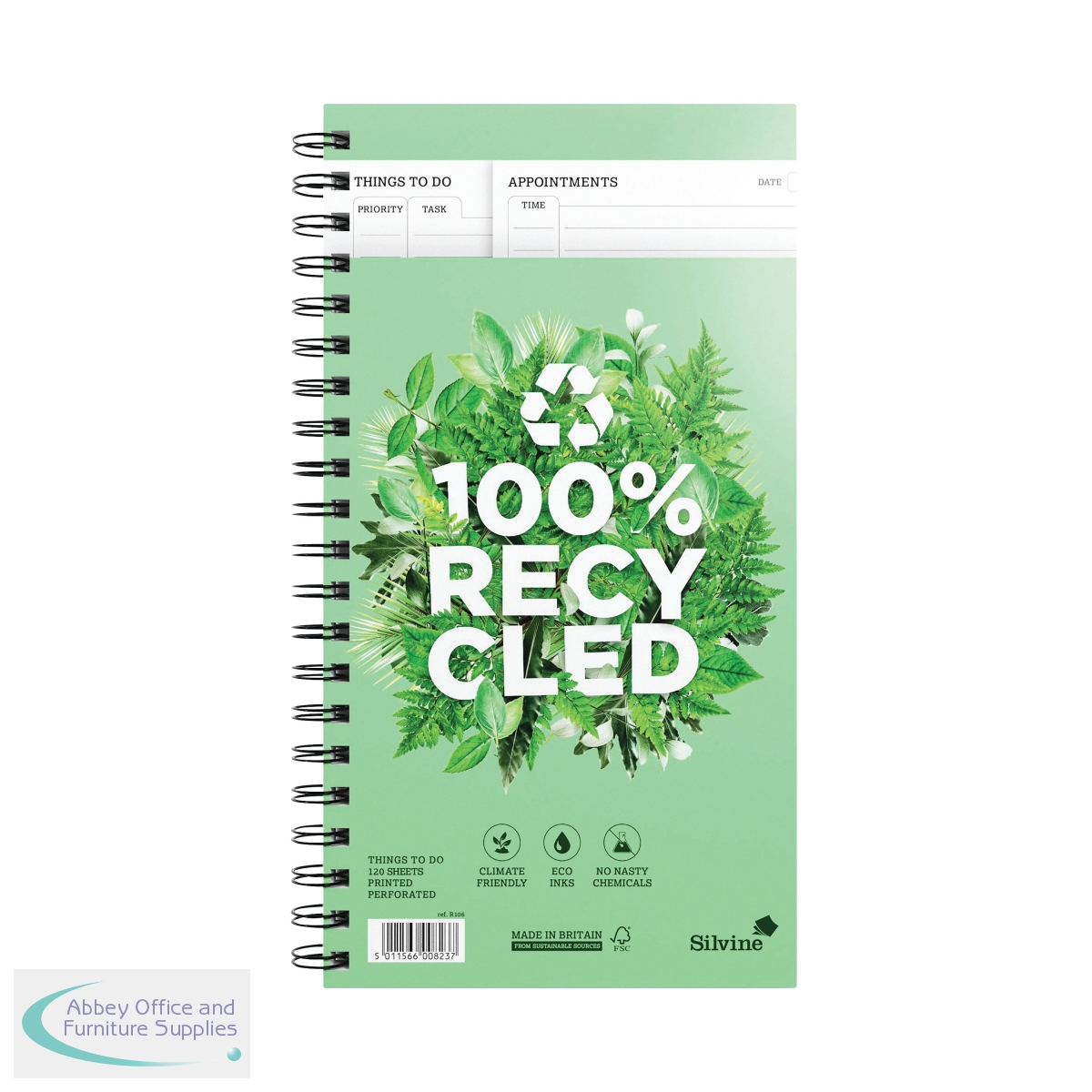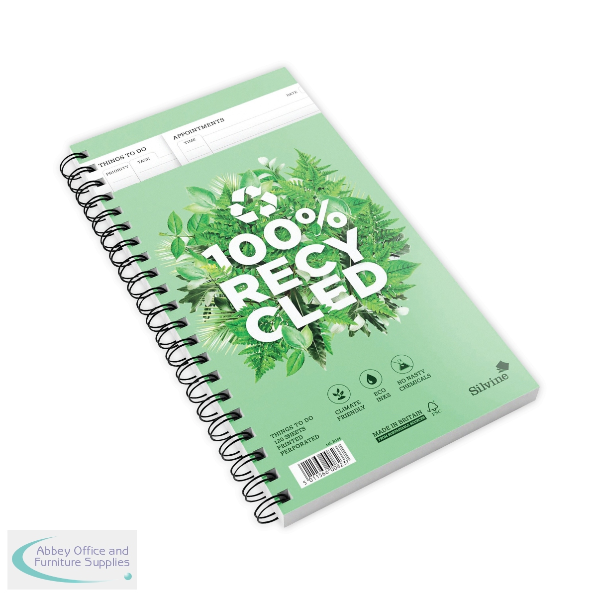 This notebook contains 120 pages pre-printed with 'Things to do' to aide those who enjoy making lists to organise their time. Measuring 280mm x 150mm, the climate friendly notebook is made from 100% recycled materials, printed with eco ink on paper. The notebook is wirebound, allowing it to lie flat when open for ease of use and is ideal for students, home and office use.