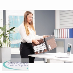 This environmentally friendly Fellowes premium classic storage box is made from 100% recycled board and is ideal for storing records and archiving documents. Featuring unique Presto Instant Assembly, simply push the corners together and the box is ready for use.This premium box features double ends, sides and base, for maximum stacking strength up to 6 high. These corrugated cardboard storage boxes accommodate A4 and foolscap documents, folders, ring binders and Premium transfer files and are the perfect height for racking systems. Measures W330 x D381 x H254mm. This pack contains 5 boxes.