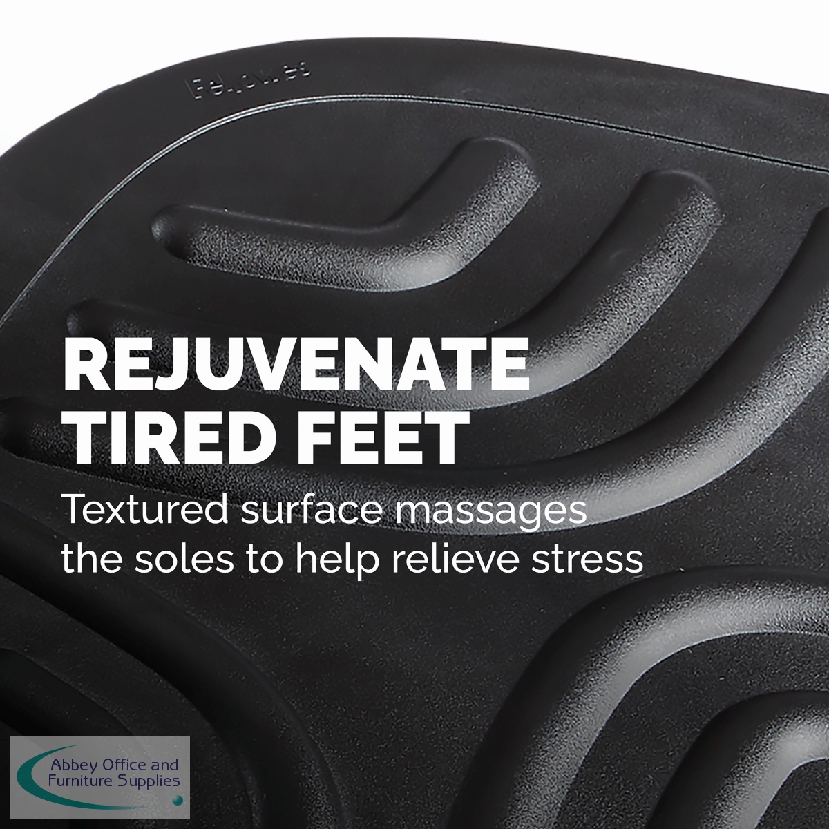 The Fellowes Smart Suites Foot Rocker is an ergonomically designed foot rest with 2 height options, developed to reduce the aches and strains associated with extended desk work. Surface massage bumps rejuvenate tired feet and relieve stress. Featuring 65mm and 95mm platform heights. A rocking motion is incorporated to improve circulation and reduce fatigue for the user. This standard sized unit is ideal for most workspaces.