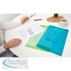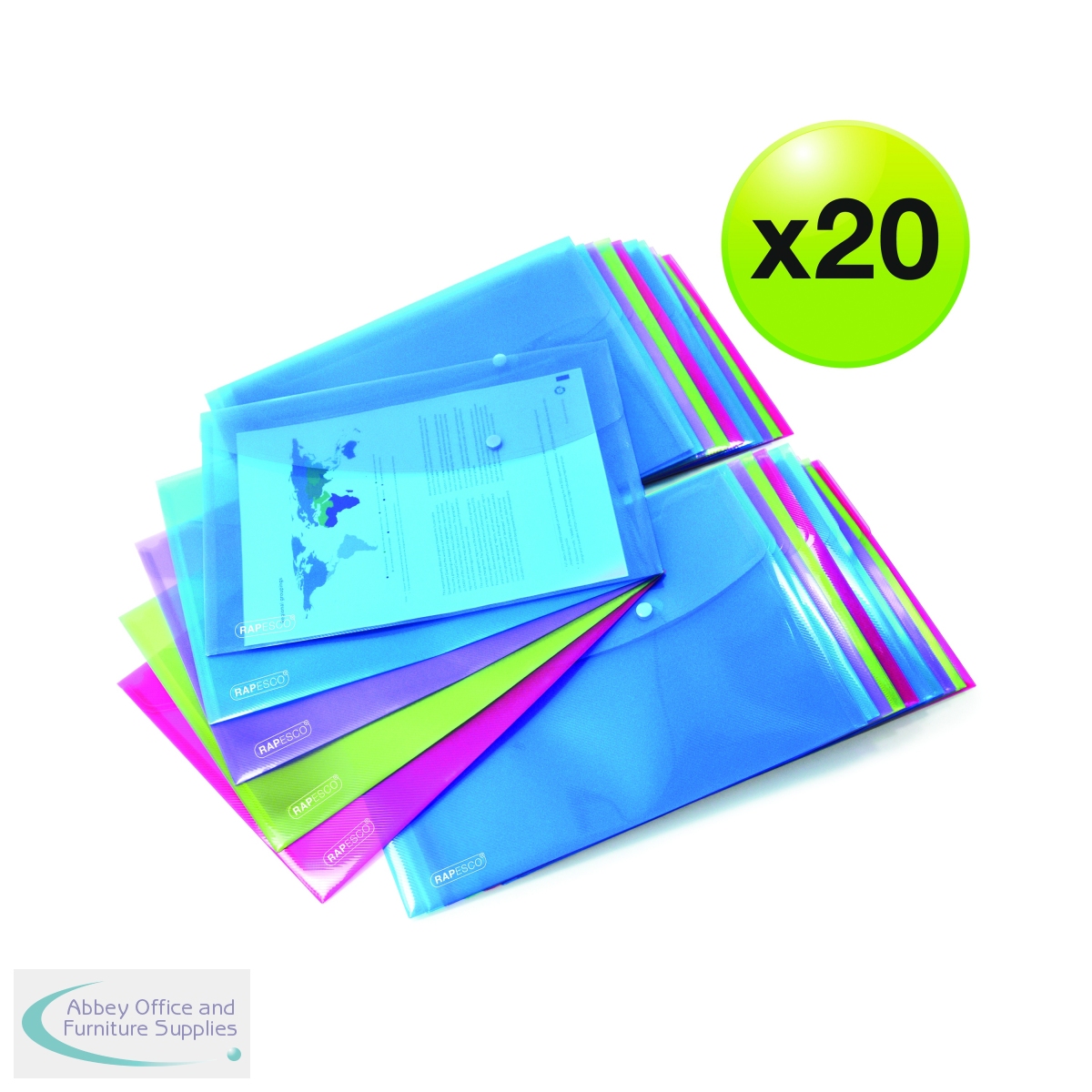 HT01583 - Rapesco Eco Recycled Popper Wallet A4+ Assorted Bright Transparent (Pack of 20) 1494