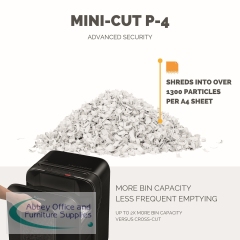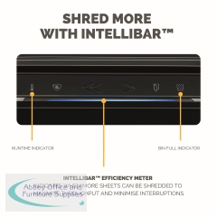 This next generation shredder offers unmatched productivity and a 100% jam proof performance. The Intellibar responsive technology provides in-use feedback that maximises the shredder's performance. It prevents interruptions by indicating when the bin and sheet capacity is nearing the limit, or when the run time is close to being reached. For extra security, it shreds each sheet of A4 paper into over 1,000 particles. For safety, the SafeSense Technology stops the machine when hands touch the paper entry and the sleep mode automatically powers down the shredder after periods of inactivity. It has a 12-sheet shredding capacity and 22-litre pull-out bin.