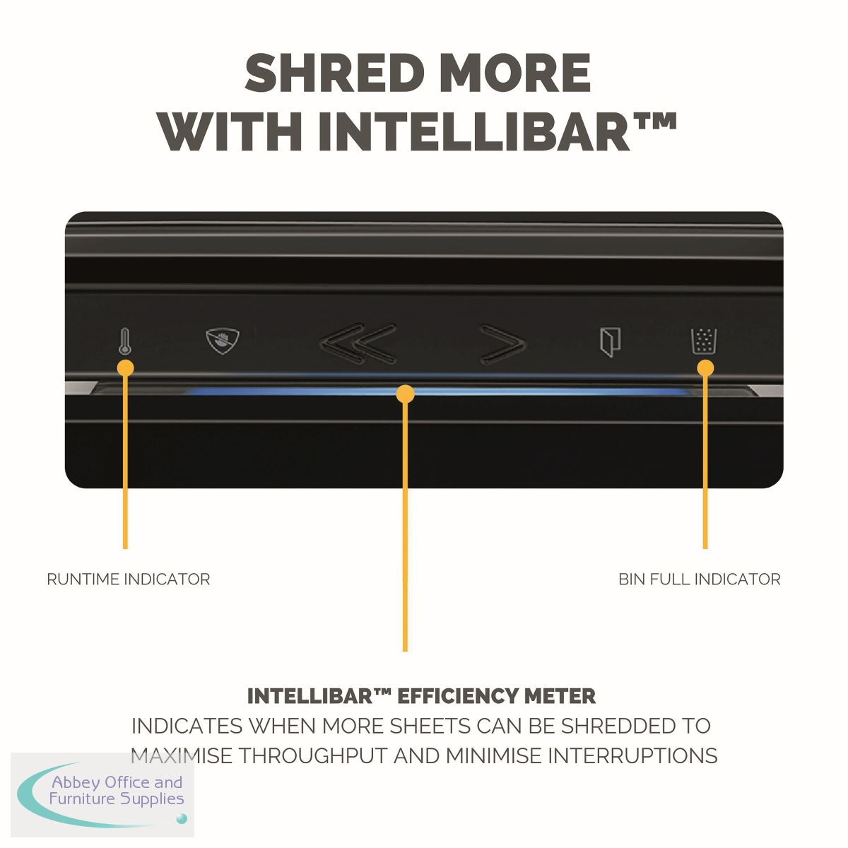 This next generation shredder offers unmatched productivity and a 100% jam proof performance. The Intellibar responsive technology provides in-use feedback that maximises the shredder's performance. It prevents interruptions by indicating when the bin and sheet capacity is nearing the limit, or when the run time is close to being reached. For extra security, it shreds each sheet of A4 paper into over 1,000 particles. For safety, the SafeSense Technology stops the machine when hands touch the paper entry and the sleep mode automatically powers down the shredder after periods of inactivity. It has a 20-sheet shredding capacity and 30-litre pull-out bin.