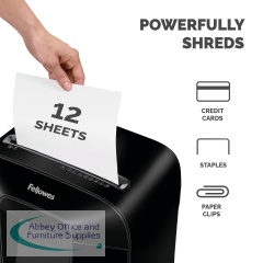 This stylish cross-cut Shredder is ideal for regular use in home and small office environments. It can shred 12 sheets at a time into 4x40mm cross-cut particles. For safety, the SafeSense Technology stops the machine when hands touch the paper entry. The shredder has an extended run time of 20 minutes making it perfect for your higher volume shredding needs. The shredder has a 19-litre pull-out bin for the easy disposal of shredded paper.