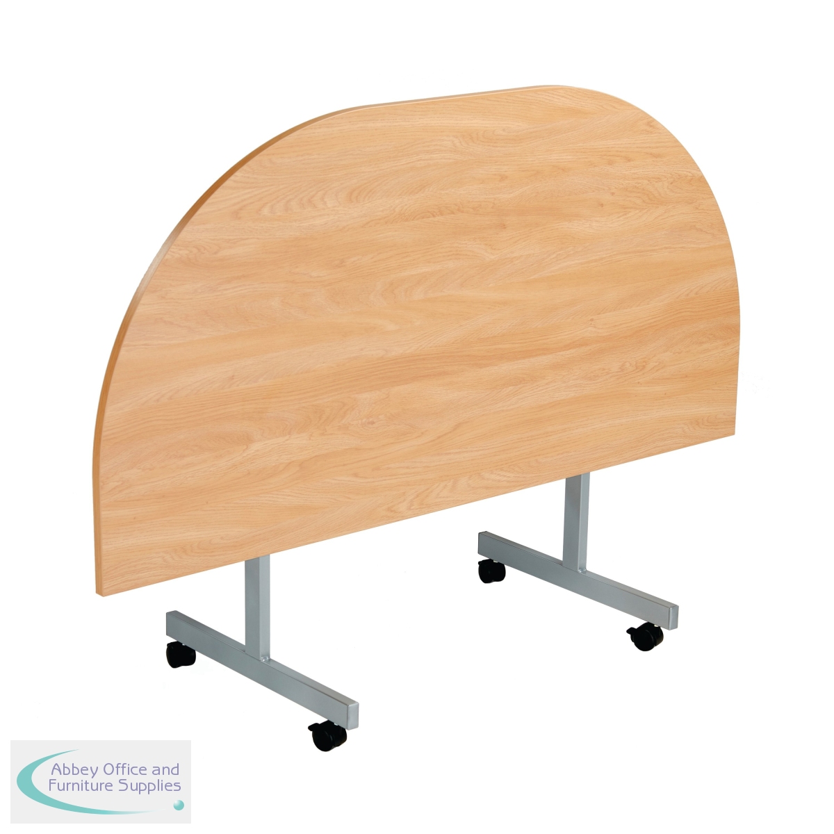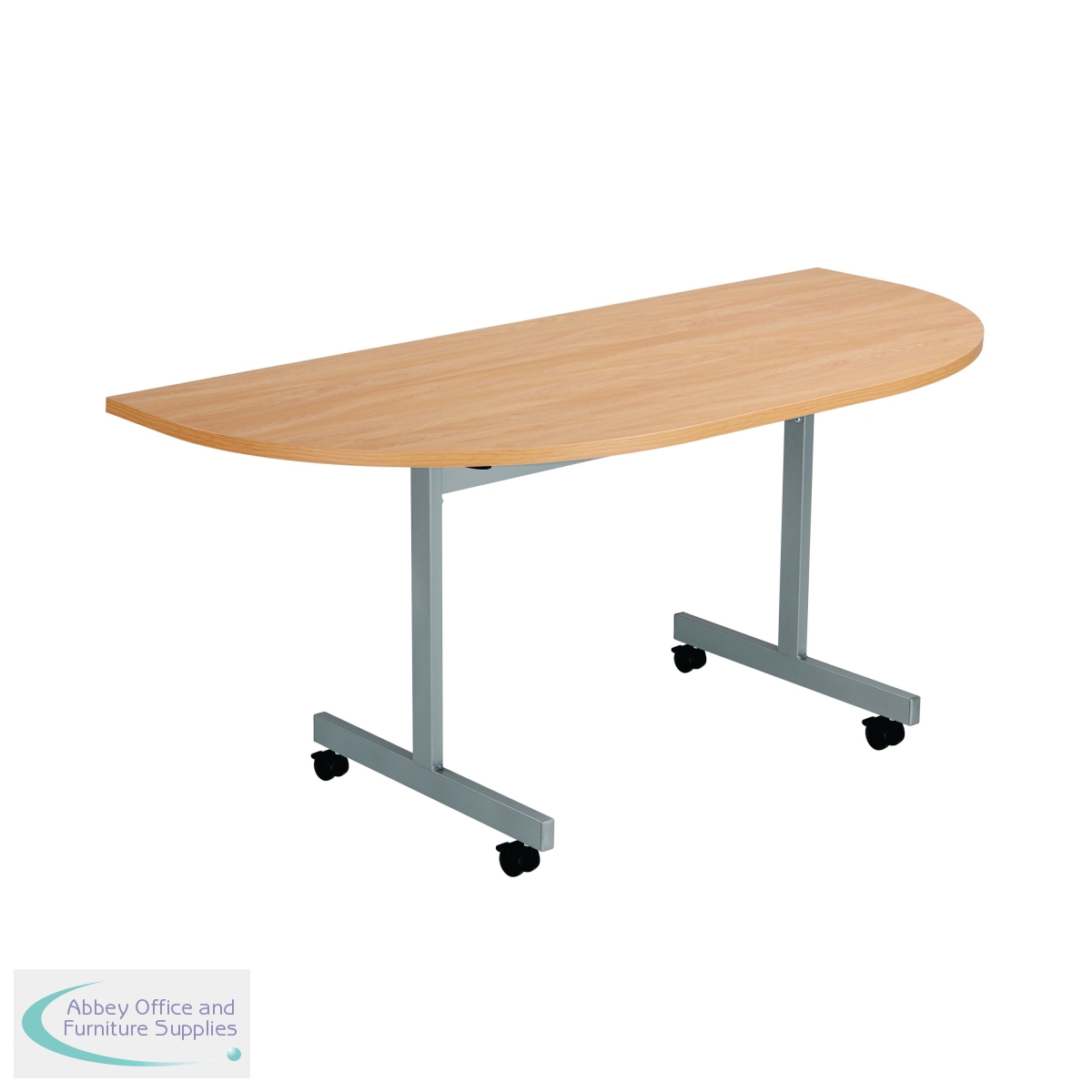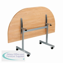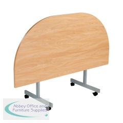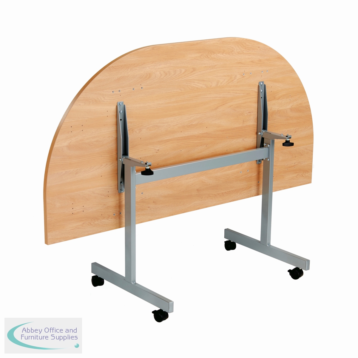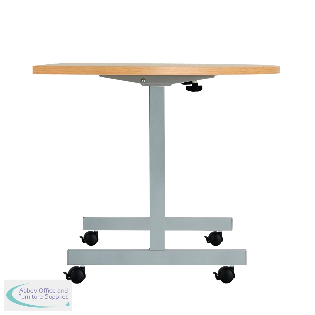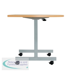 This economical mobile flip-top table has a hard-wearing MFC top and silver legs with black castors. The table nests for easy storage when not in use.