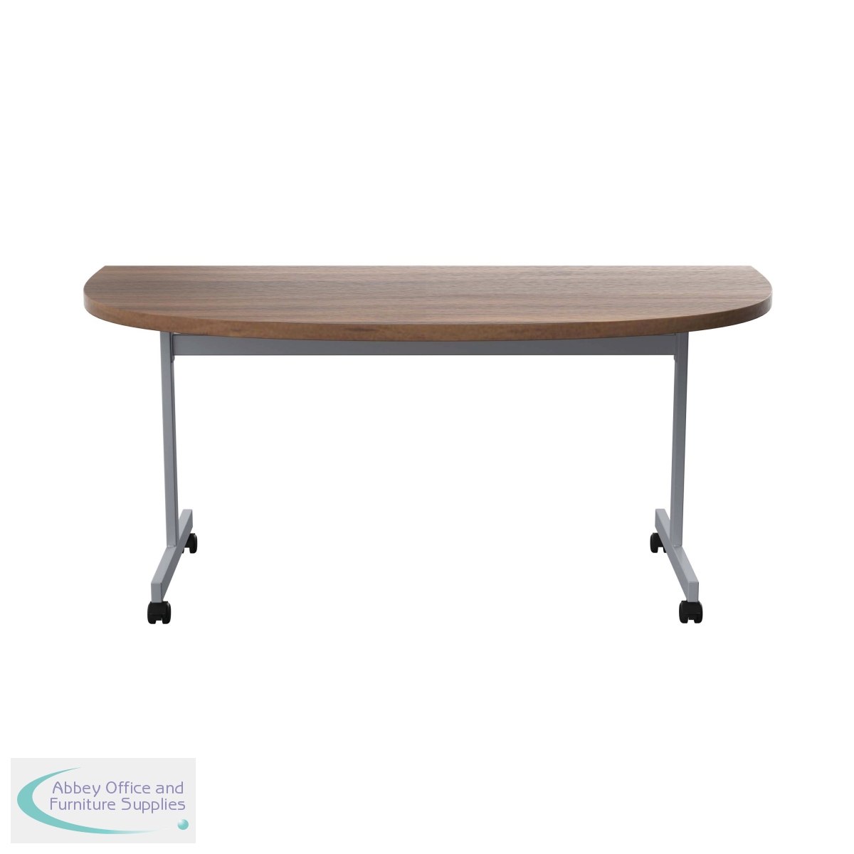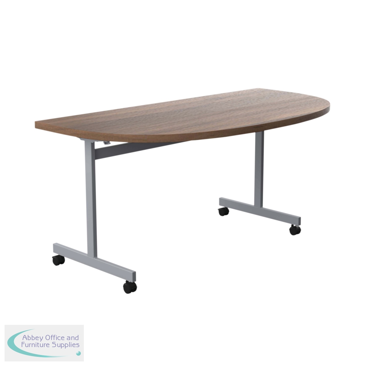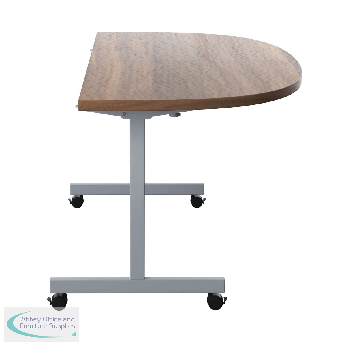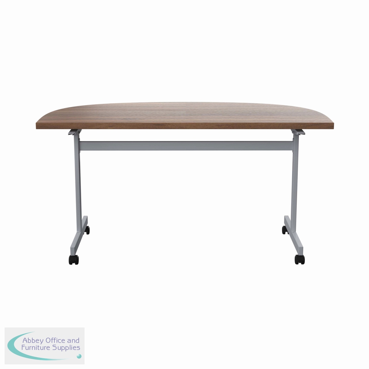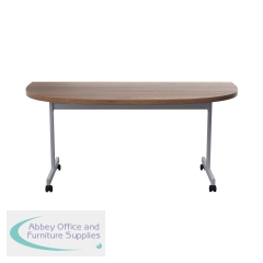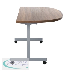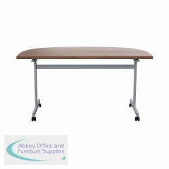 This economical mobile flip-top table has a hard-wearing MFC top and silver legs with black castors. The table nests for easy storage when not in use.