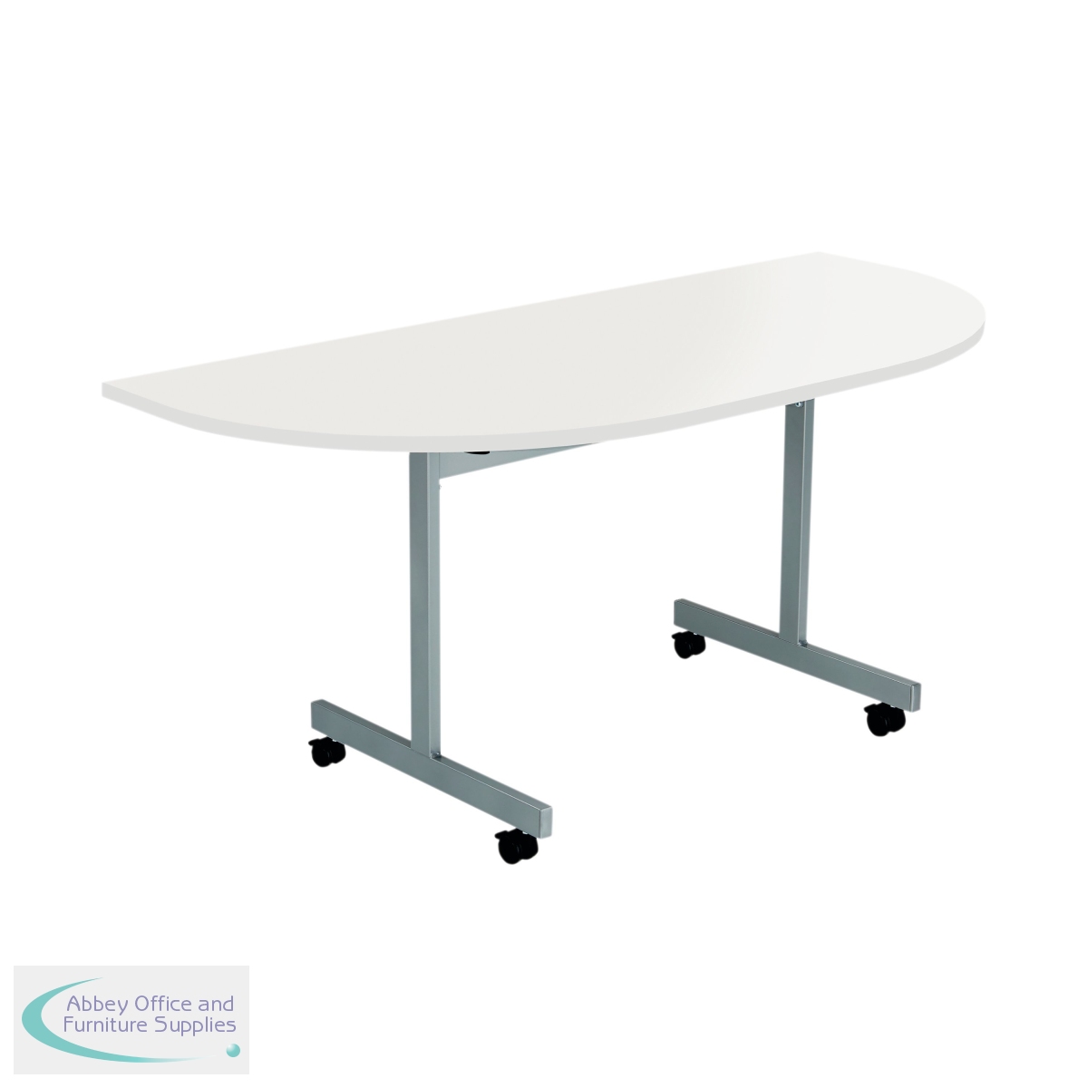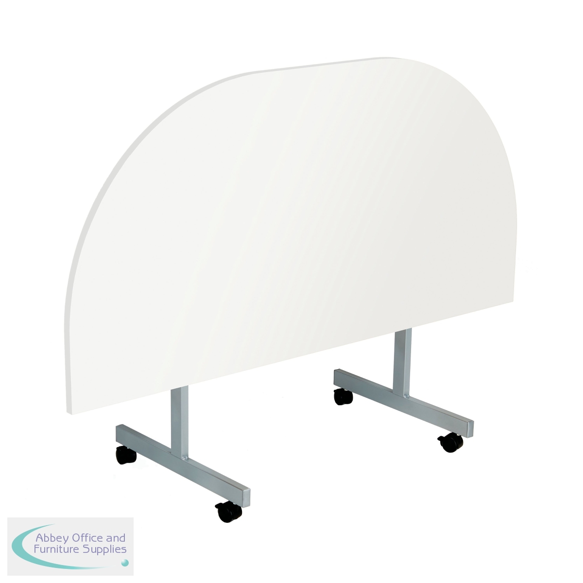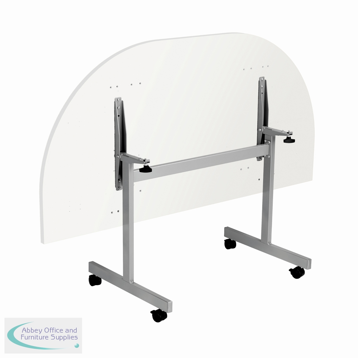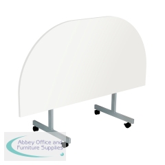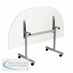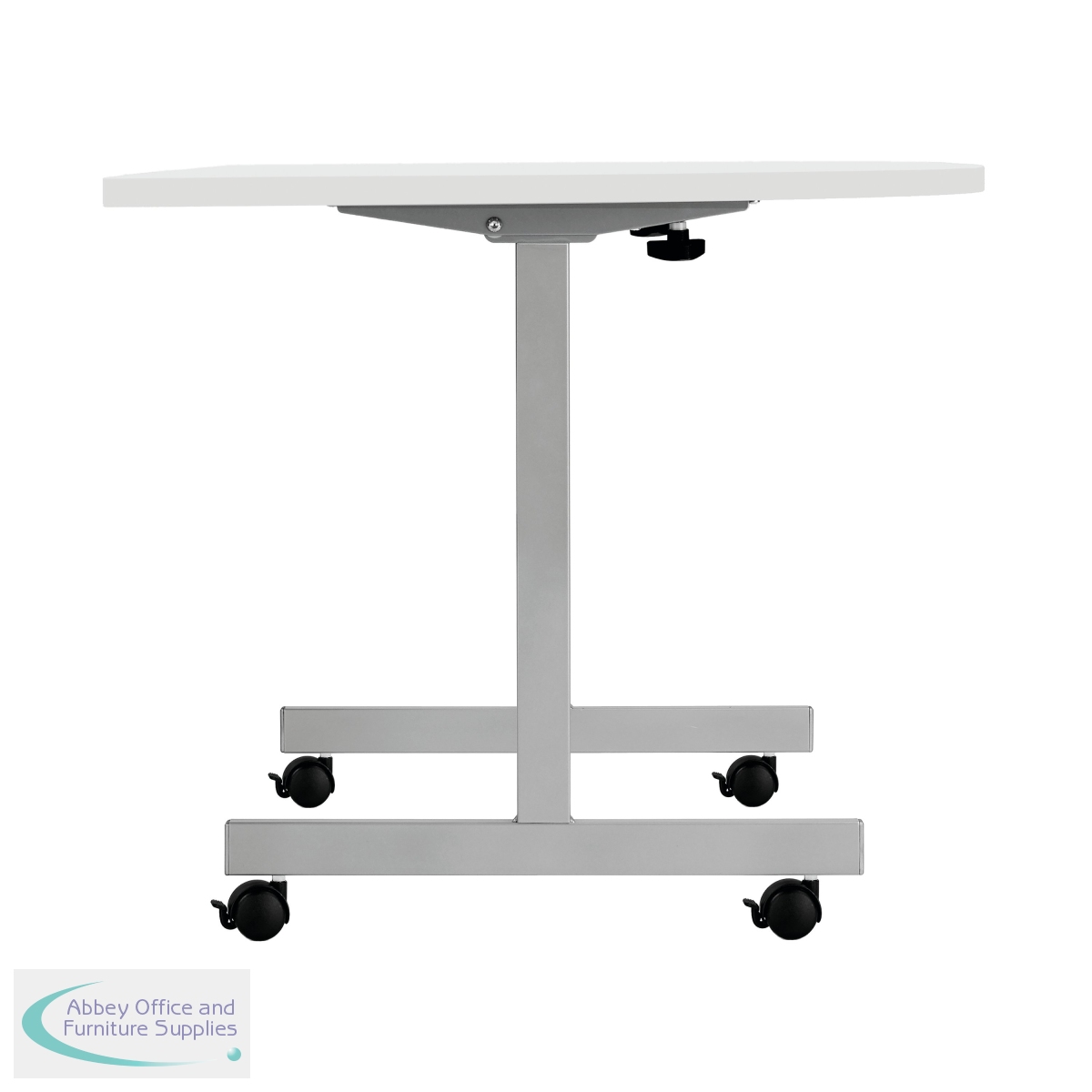 This economical mobile flip-top table has a hard-wearing MFC top and silver legs with black castors. The table nests for easy storage when not in use.