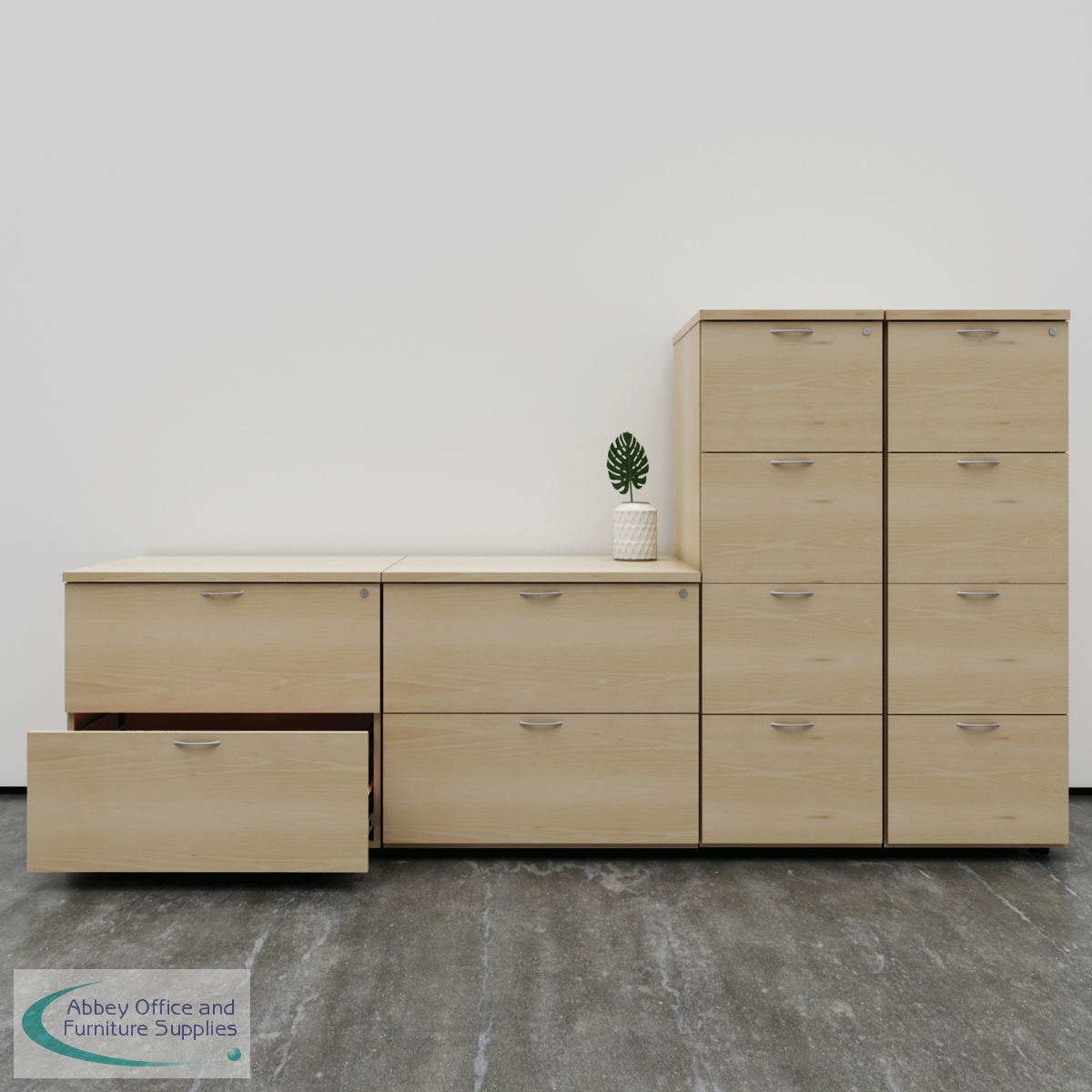 A must for any office, this sturdy three drawer wooden filing cabinet will help to keep your documents filed securely in A4 or foolscap hanging files. It is lockable, with an anti-tilt mechanism and 100% drawer extension.