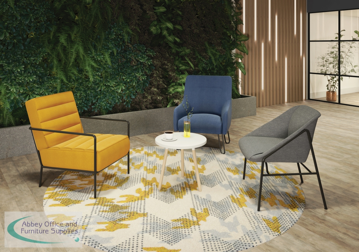 This Jemini reception armchair has a classic Scandinavian design and is ideal for waiting rooms. It has a black, powder-coated 18mm frame and a low, 390mm seat height.
