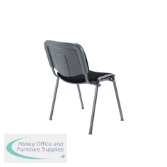 This multipurpose stacker chair is ideal for use in in both public and private sector environments. It stacks four high, making it ideal when storage space is a premium. It has a cushioned seat and back for added comfort and a robust black frame.