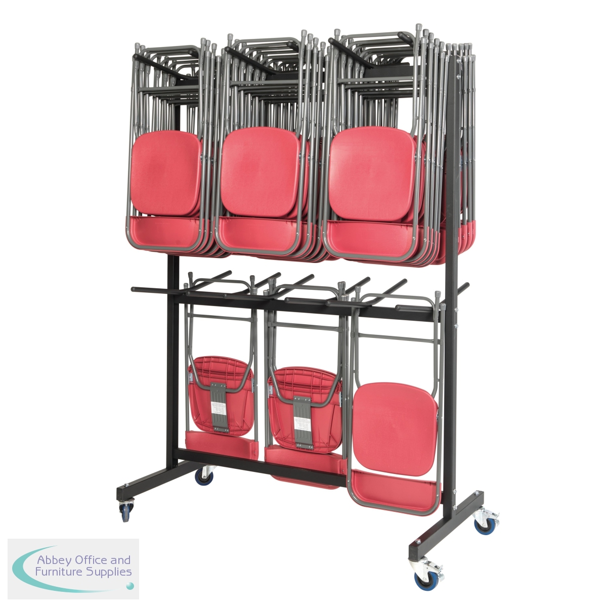 The Titan Folding Chair Trolley is sturdy and has the capacity to hold up to 140 folding chairs. It is easy to assemble and easy to control with two swivel and two fixed castors.