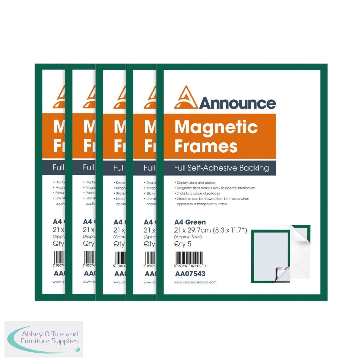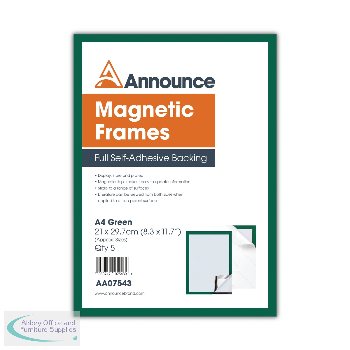 AA07543 - Announce Magnetic Frames A4 Green (Pack of 5) AA07543
