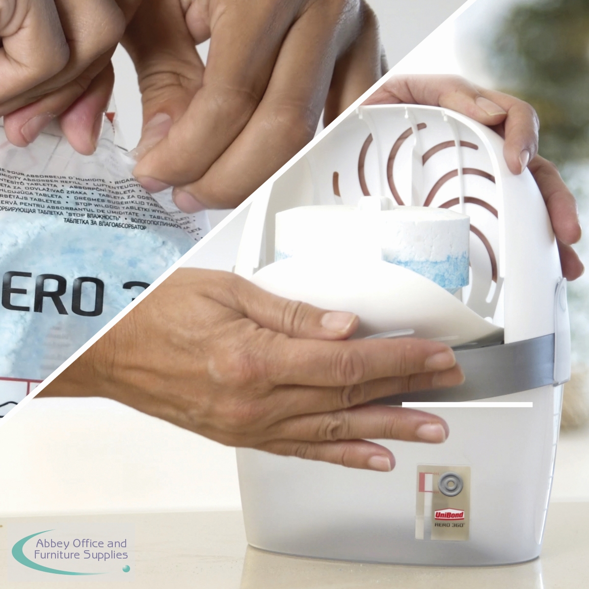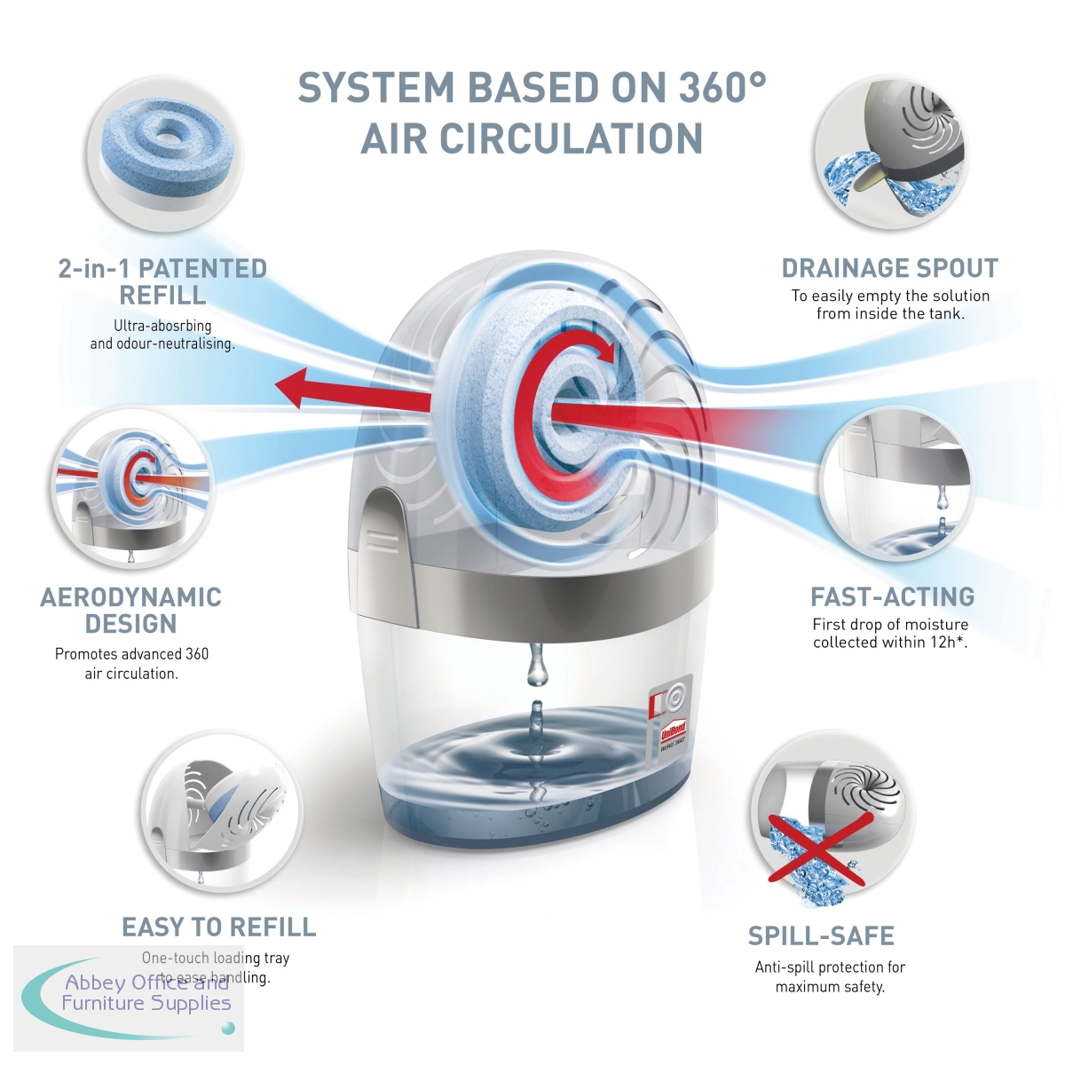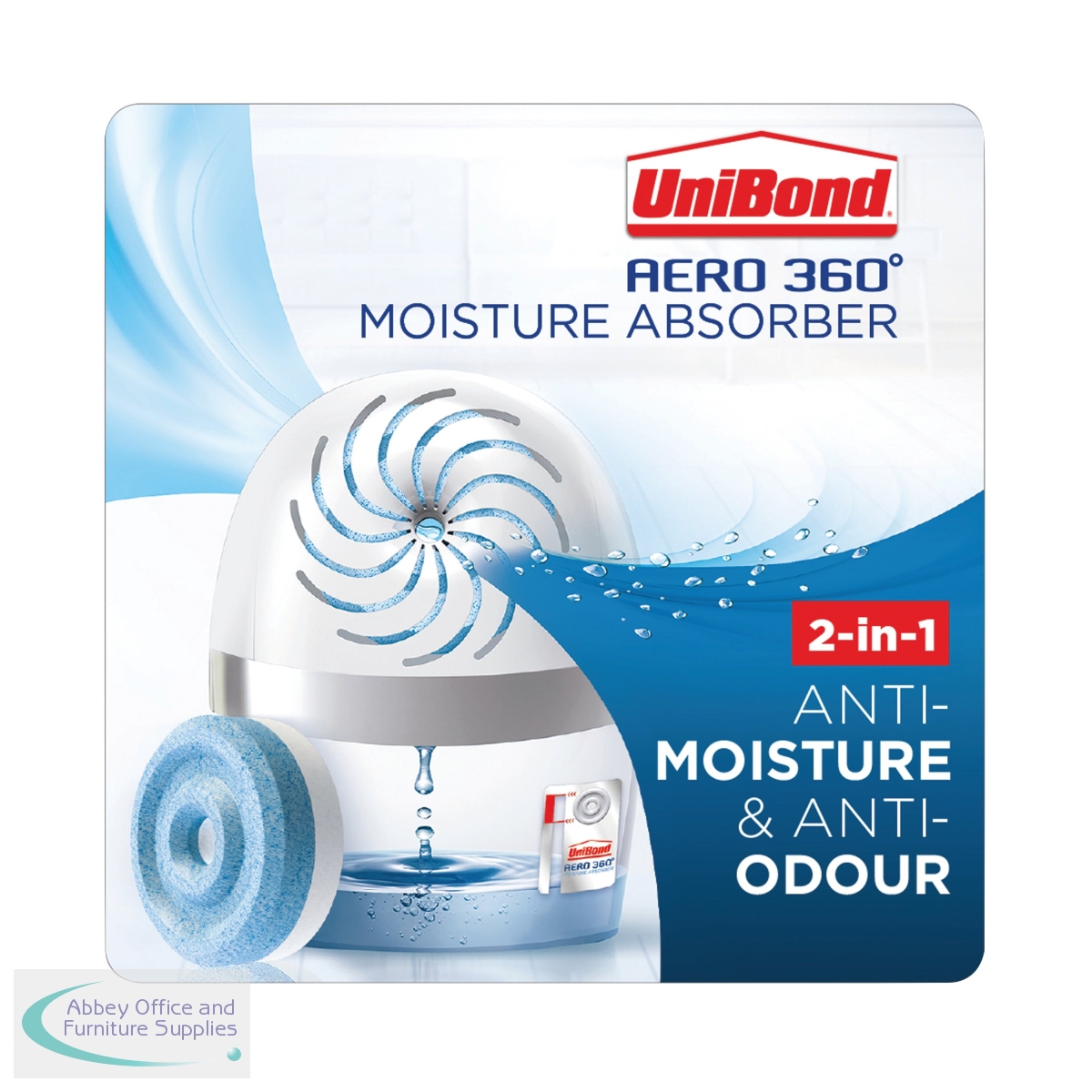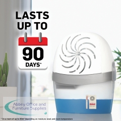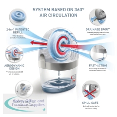 Using the power of 360 degree air circulation, this refillable UniBond Aero 360 Pure moisture absorber and dehumidifier is designed for maximum moisture absorption to keep your home dry and fresh with improved air quality. Circulates air through and around the suspended tab for up to 40% improved efficiency and up to 70% neutralisation of bad odours, making it great for kitchens and bathrooms. This device has a lid made from 95% recycled plastic and 100% recyclable packaging.