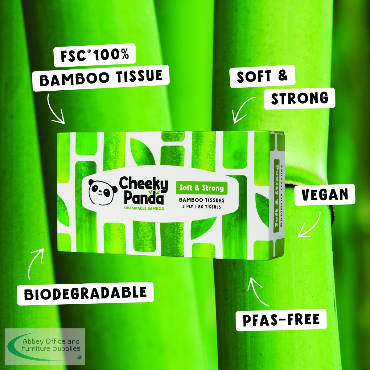 CPD67863 - Cheeky Panda Bamboo Tissues 3-Ply 80 Tissues (Pack of 12) 1103039