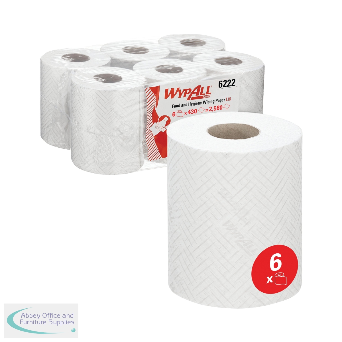 KC05158 - WypAll L10 Food and Hygiene Centrefeed Paper Rolls 1 Ply White (Pack of 6) 6222