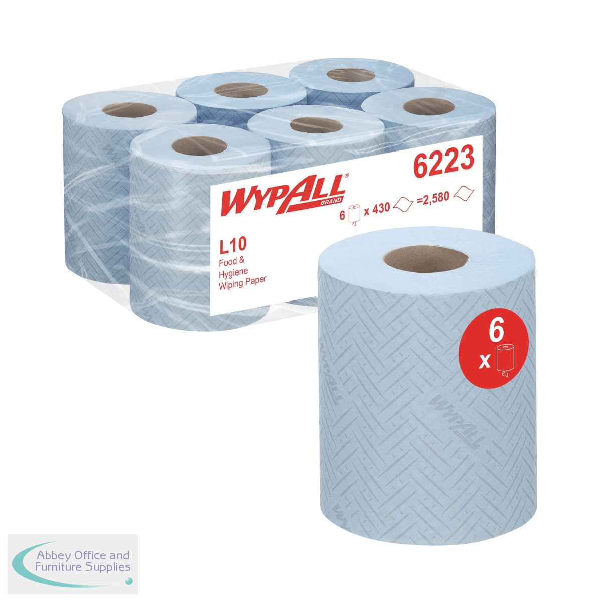 KC05159 - WypAll L10 Food and Hygiene Centrefeed Paper Rolls 1 Ply Blue (Pack of 6) 6223