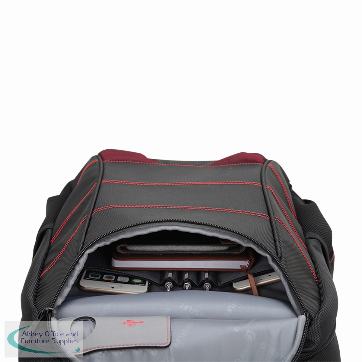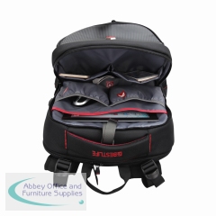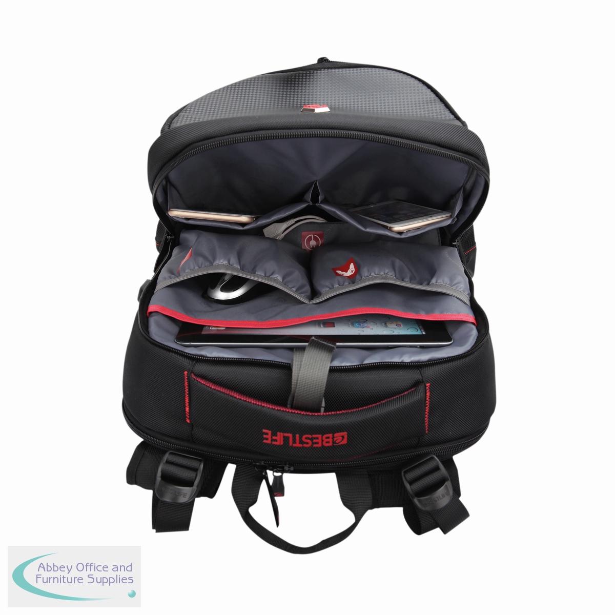 This BestLife Gaming Snake Eye Backpack has been specially designed for gamers. Its three compartments provide all the space you need to carry your electronic devices and personal equipment. This gaming backpack has a padded, anti-vibration compartment to protect laptops up to 17 inches and a handy USB connector for charging your devices on the go.