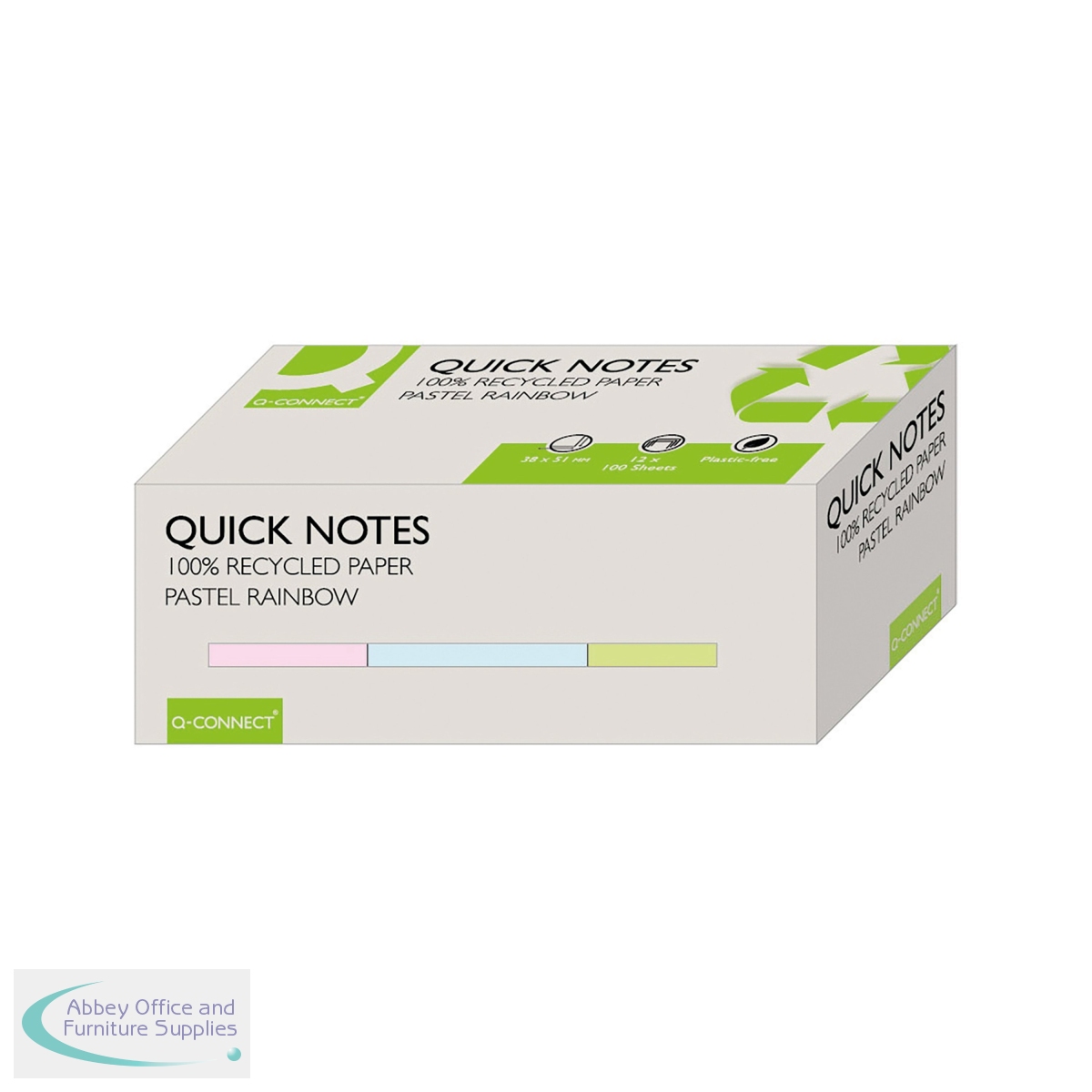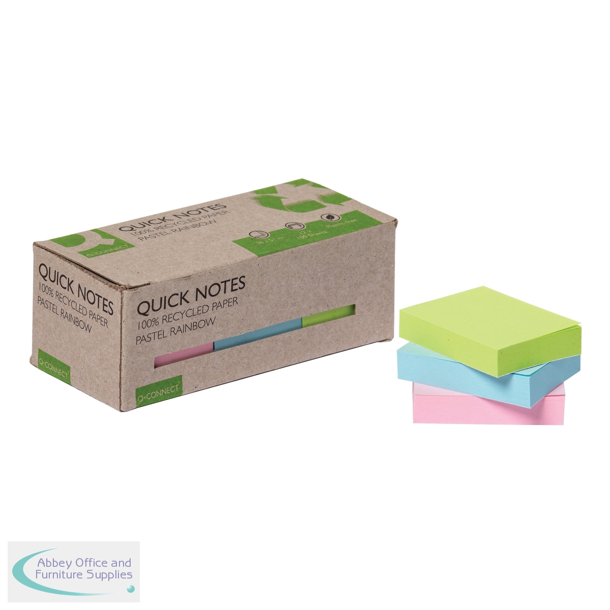KF17326 - Q-Connect Recycled Notes 38x51mm Pastel Rainbow (Pack of 12) KF17326