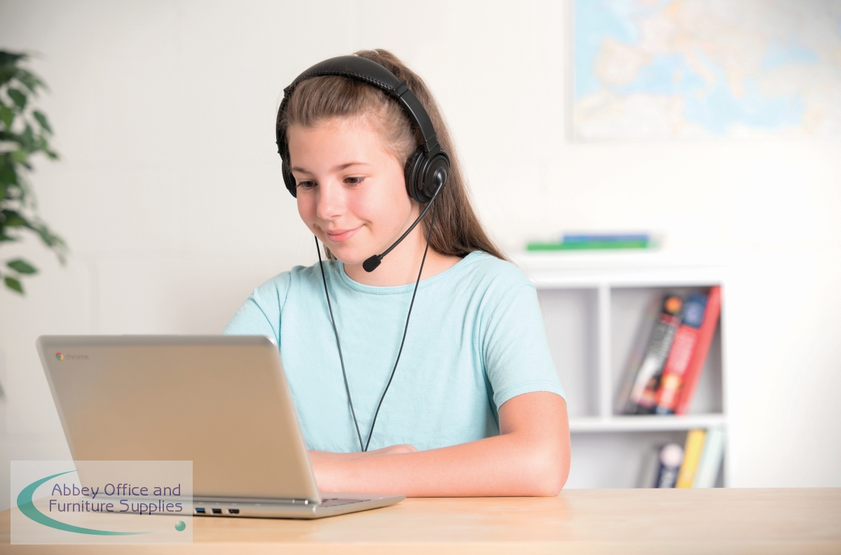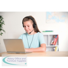 Kensington headphones with microphone provide high quality stereo sound, for an exceptional listening experience. Designed to fit heads of all ages, adjustable headband, with earpads covered in soft leatherette for comfort. Noise-cancelling microphone for optimum speech clarity.