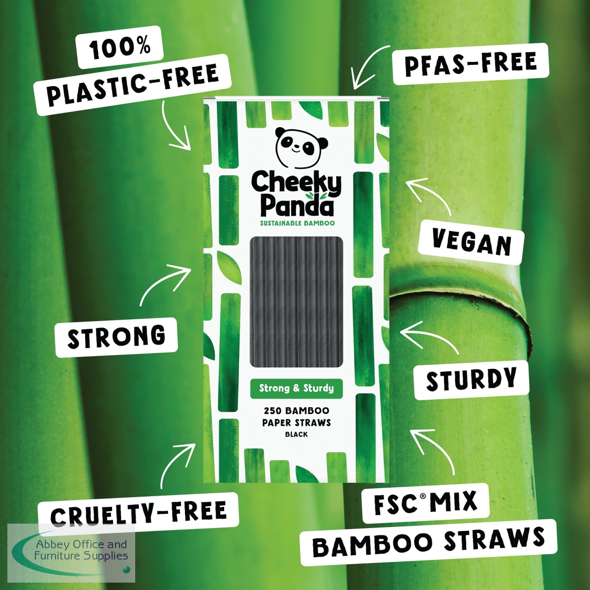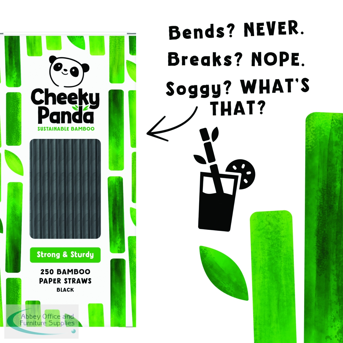 CPD63036 - Cheeky Panda Bamboo Paper Straws Black (Pack of 250) 0111130