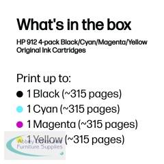 HP6ZC74AE - HP 912 Original Ink Cartridge 2.93/8.29-ml CMYK 4-pack 6ZC74AE
