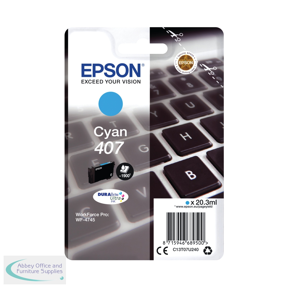 Epson DURABrite Ultra ink is a quick drying formula allowing documents and photos to be handled immediately after printing, Water, smudge and highlighter resistant so ideal for essential reports and archival documents. Each cartridge contains 20.3ml of cyan ink. With a print yield of up to 1,900 pages.