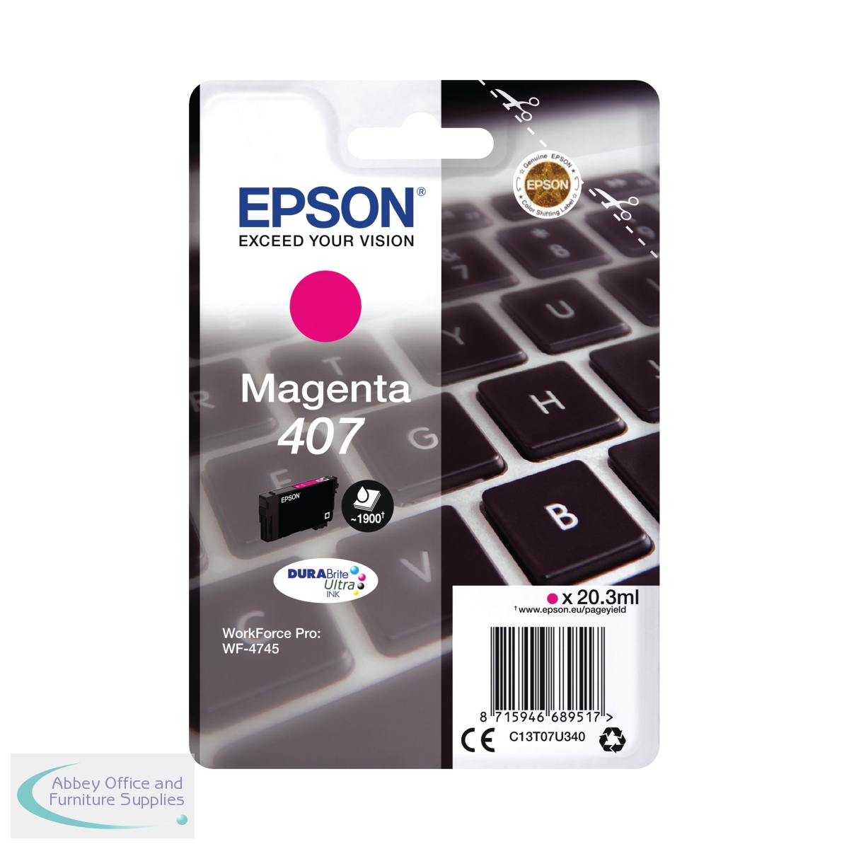 EP68951 - Epson 407 Keyboard DURABrite Ultra Ink Cartridge Magenta C13T07U340