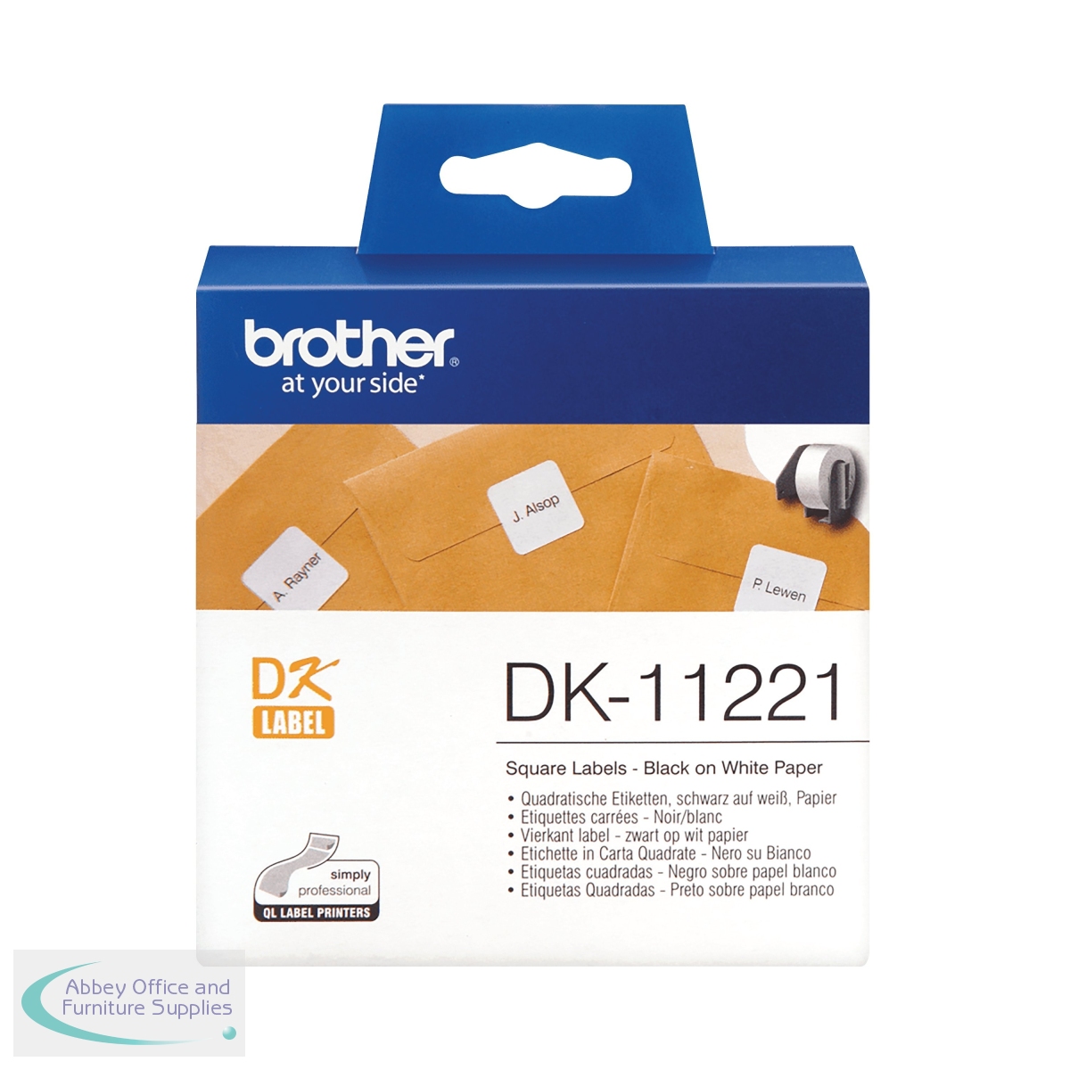 For use with a wide range of Brother QL printers, this label roll allows you to print black on white labels for mailing and administrative purposes such as address labels, barcodes, visitor badges, ideal for both home and office. This white label roll has 1,000 pre-cut square labels, 23mm x 23mm.