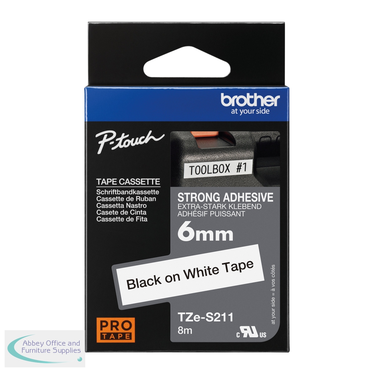 Designed for use with Brother P-touch label printers with the TZ or Tzu logo on the tape cassette cover. This self-adhesive laminated labelling tape with special strong adhesive offers great sticking power, even on rough or uneven surfaces, making it especially versatile. Easy-to-read, black on white tape, 6mm x 8m.