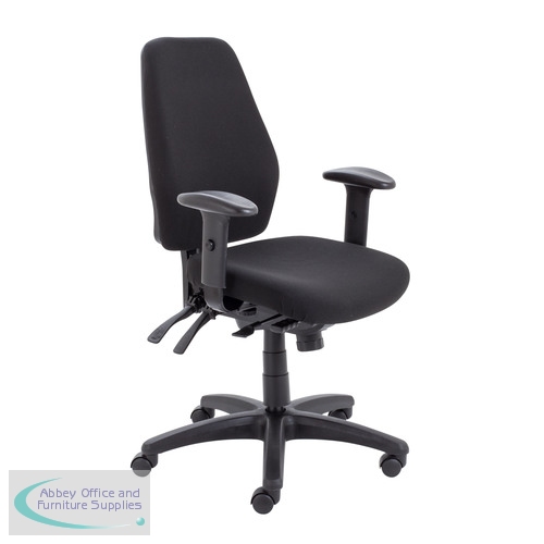 A call centre chair adapted to a heavy-use environment, featuring a thick moulded foam back, 2D adjustable arms and a heavy-duty Asynchro mechanism. Suitable for 24 hour use, for users up to 24 stone.