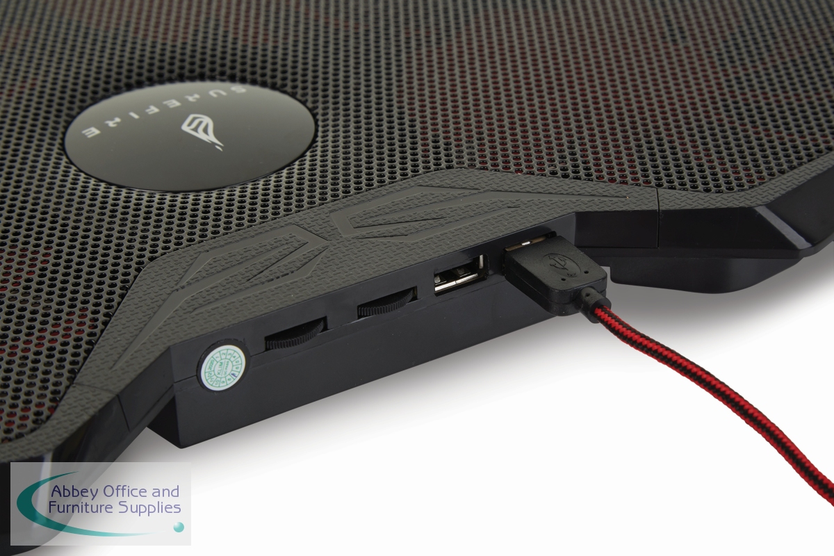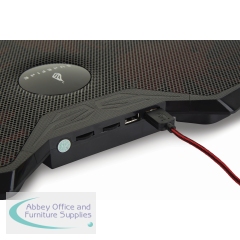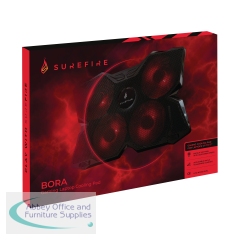 SureFire Bora Gaming Laptop Cooling Pad is suitable for laptops from 12 to 17 inches. The four adjustable Red LED illuminated fans achieve a cooling speed of up to 1200RPM. It has two different viewing angles, a non slip base and two hinged stoppers to secure the laptop. There is also an additional USB port. System Requirements: Notebook with USB port or power supply with USB 2.0 and higher (5V/500mA) USB 3.2 Gen 1 or USB 2.0.
