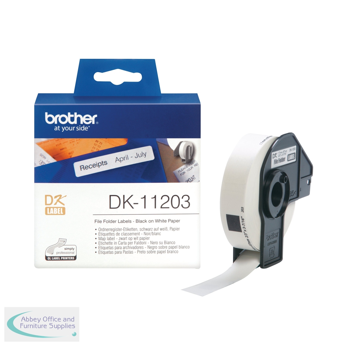 BA62815 - Brother DK-11203 Label Roll 17x87mm 300 on Roll Black on White DK11203