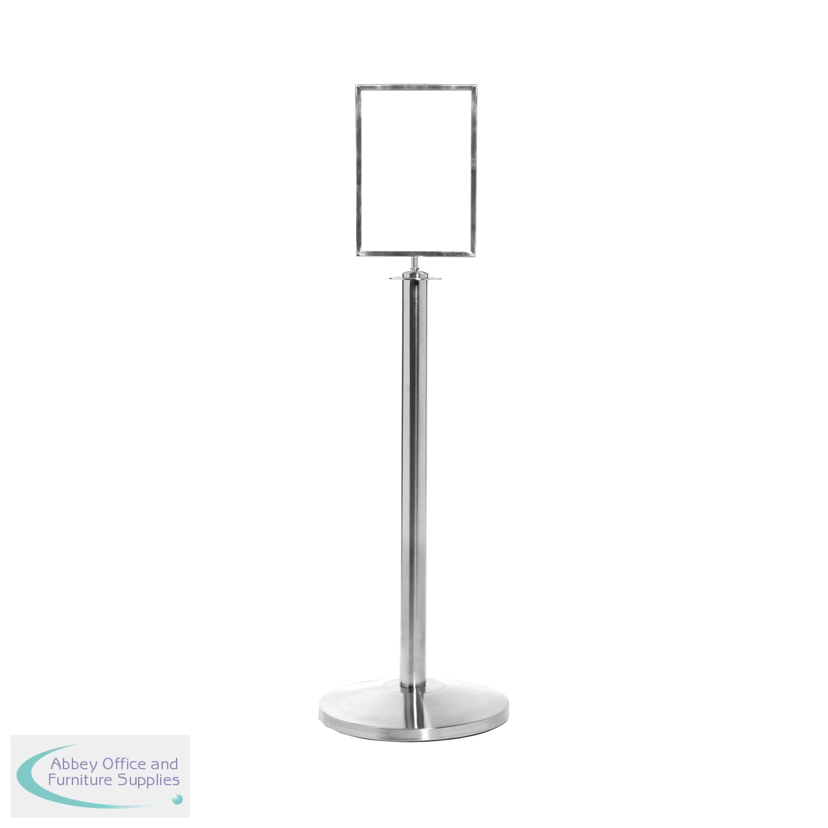 This stylish flat top post with an A4 sign holder, with a silver, polished steel finish is ideal for displaying information, ideal for use in reception areas, conference venues, entertainment halls, providing a professional and informative welcome for visitors.