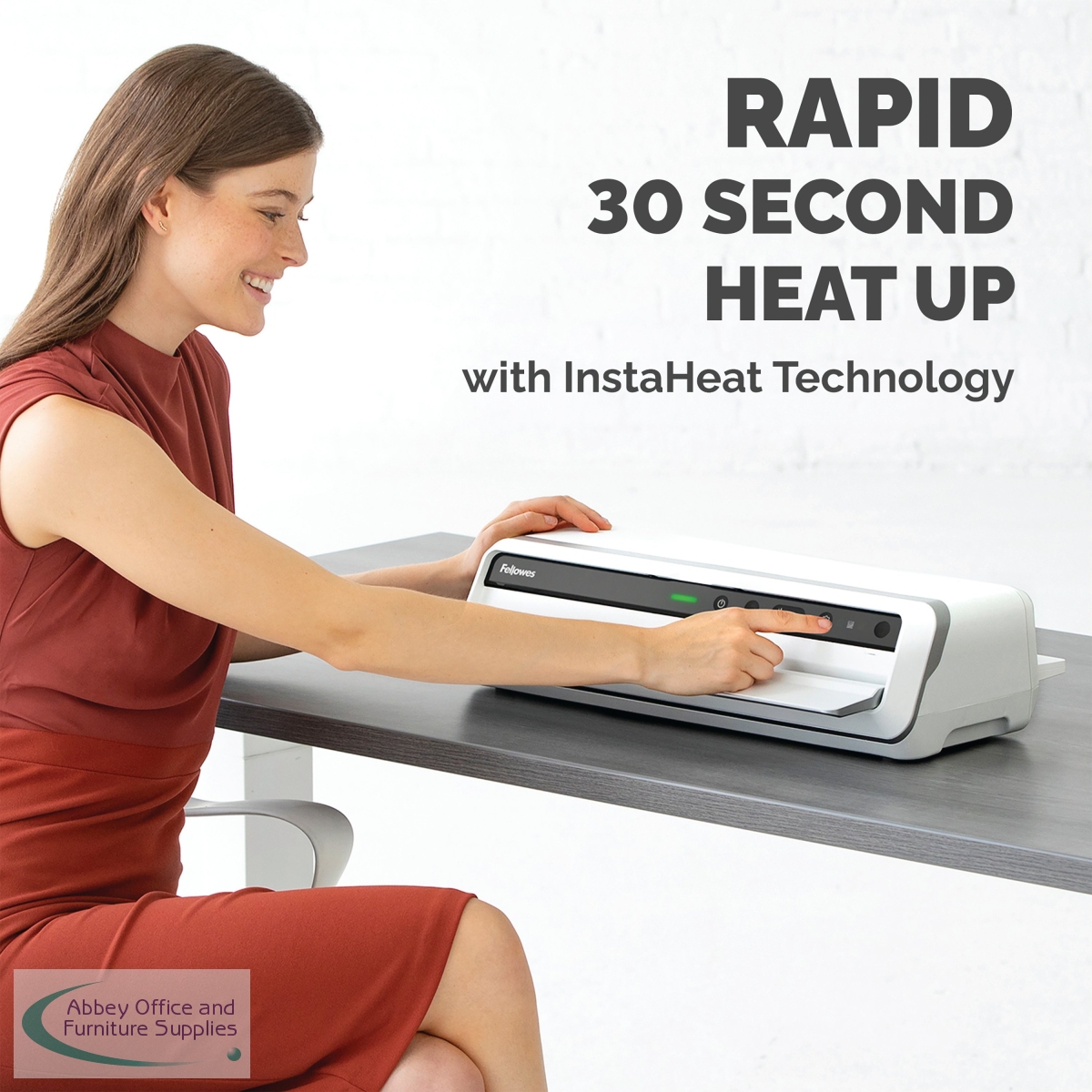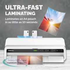 The Fellowes Venus, A3 laminator is ultra-fast, offering the perfect combination of quality, flexibility and productivity for multiple users and office environments. Laminating all pouch sizes, up to A3 and 250 microns thick, the laminator features AutoSense which adjusts the settings to the correct pouch thickness and the Pro-setting prioritises quality or speed. Heating up in just 30-60 seconds with InstaHeat technology, an A4 pouch can be laminated in as little as 10 seconds. Supplied with a 2 year warranty, and laminator pack including 10 pouches and a cleaning sheet.