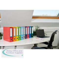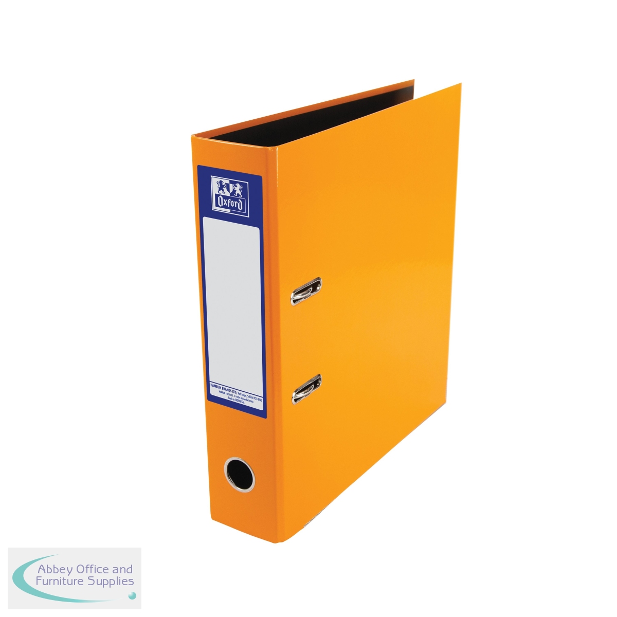 This Oxford laminated A4 lever arch file contains a standard lever arch mechanism, with a 70mm capacity. Orange laminated paper over board with a high gloss finish. The spine features a thumb hole for easy retrieval from a shelf and a large spine label.