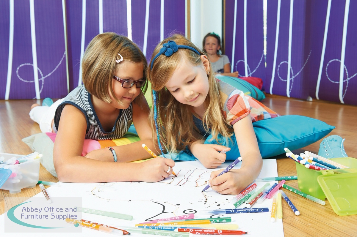 The Stabilo Trio A-Z is a high quality fibre tip pen with a triangular grip zone to encourage the recommended tripod grip. The fine robust tip delivers a line width of 0.7mm, designed especially for drawing and writing; and, the washable ink ensures doodles and drawings can be removed with ease from both hands and clothes. Supplied in a gratnell tray of 144 pens in assorted colours.
