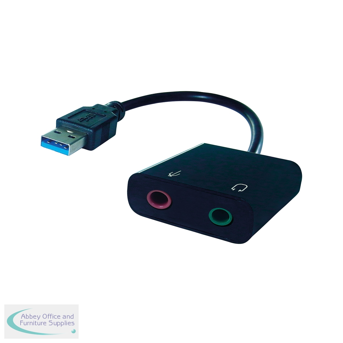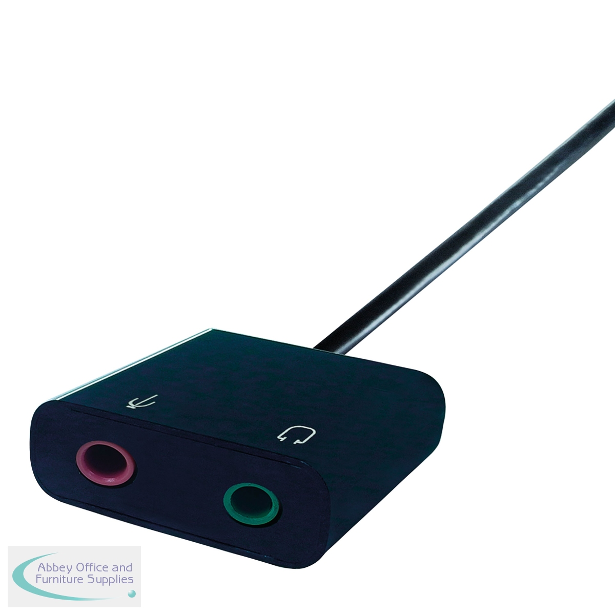 This cable lets you connect your standard 3.5mm headset to your PC, laptop or tablet that does not have a 3.5mm audio socket. This USB Sound Adapter plugs into your USB source creating two 3.5mm sockets allowing you to connect your standard 3.5mm headset and microphone into your chosen PC, laptop or tablet. This adapter allows you to continue to use your 3.5mm headset rather than having the expense of upgrading your headset to a USB model.