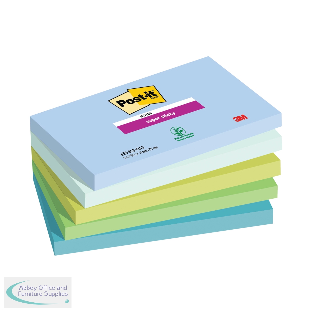 3M92437 - Post-it Super Sticky Notes Oasis 76x127mm 90 Sheets (Pack of 5) 7100258790