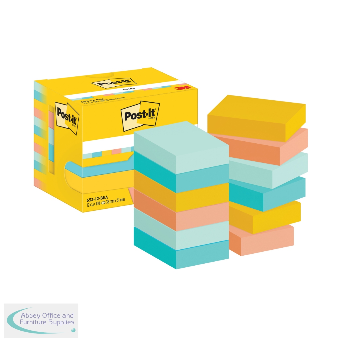 3M92825 - Post-it 38x51mm 100 Sheets Cardboard Packaging Beachside (Pack of 12) 7100259449