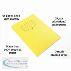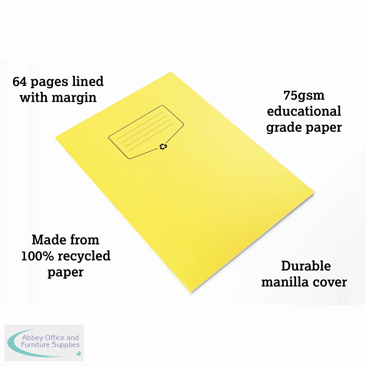 SV00554 - Silvine Recycled Exercise Book Lined with Margin 64 Pages A4 Yellow (Pack of 10) EXRE103