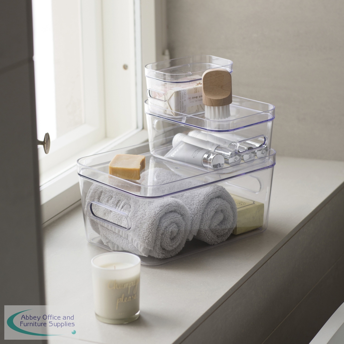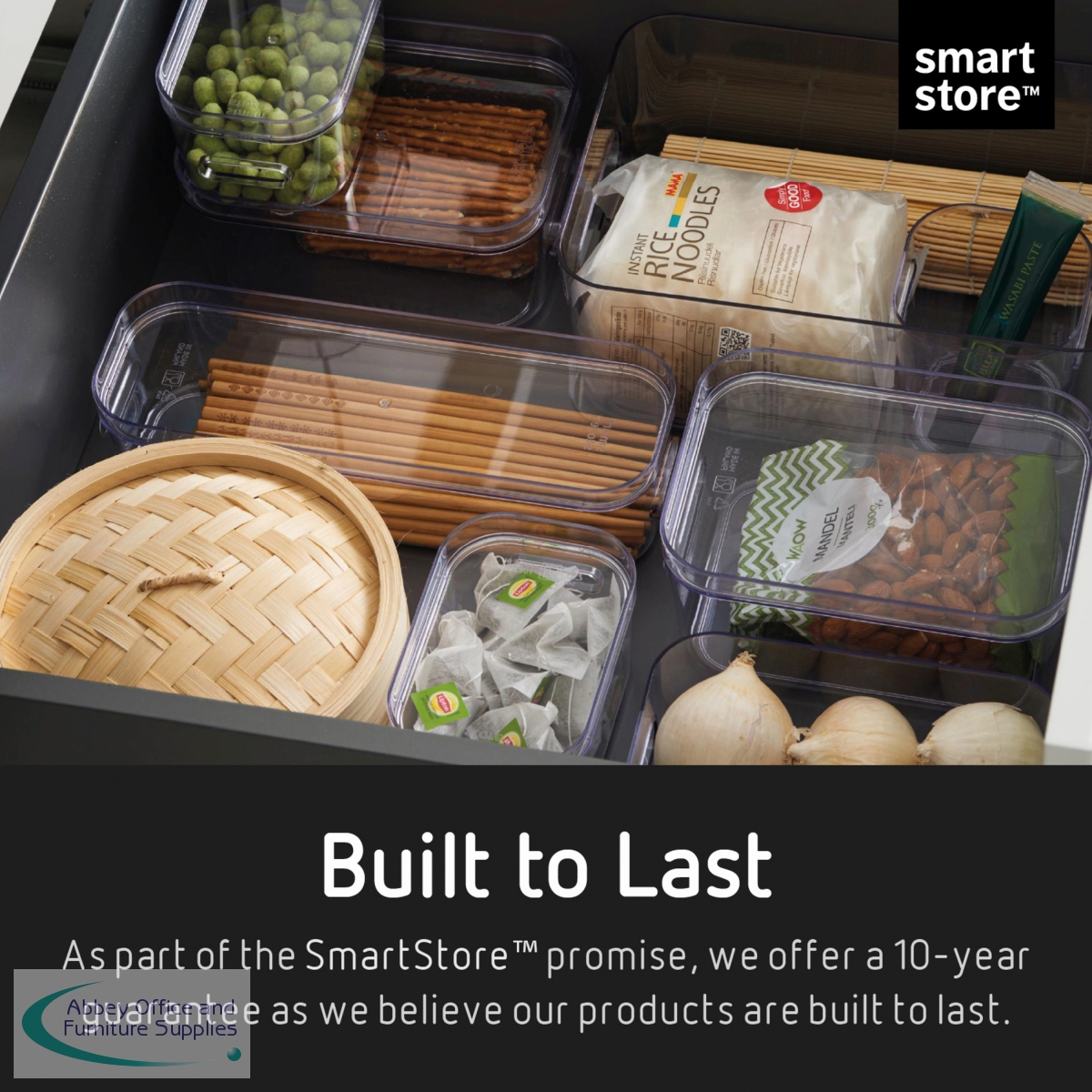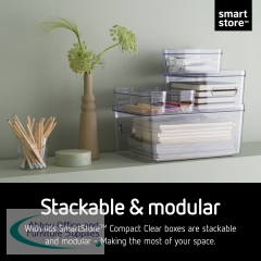 The transparent box size small is ideal for optimizing storage of small sized items in cabinets, drawers or on a desk. BPA free and food approved, ideal for fridge organisation. The SmartStore Compact Clear is a modular, high-quality box that is easy to clean by hand-wash or in the dishwasher.
